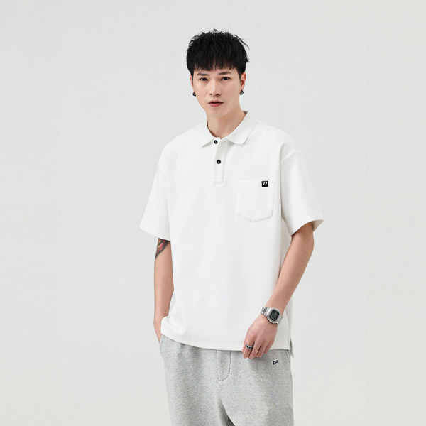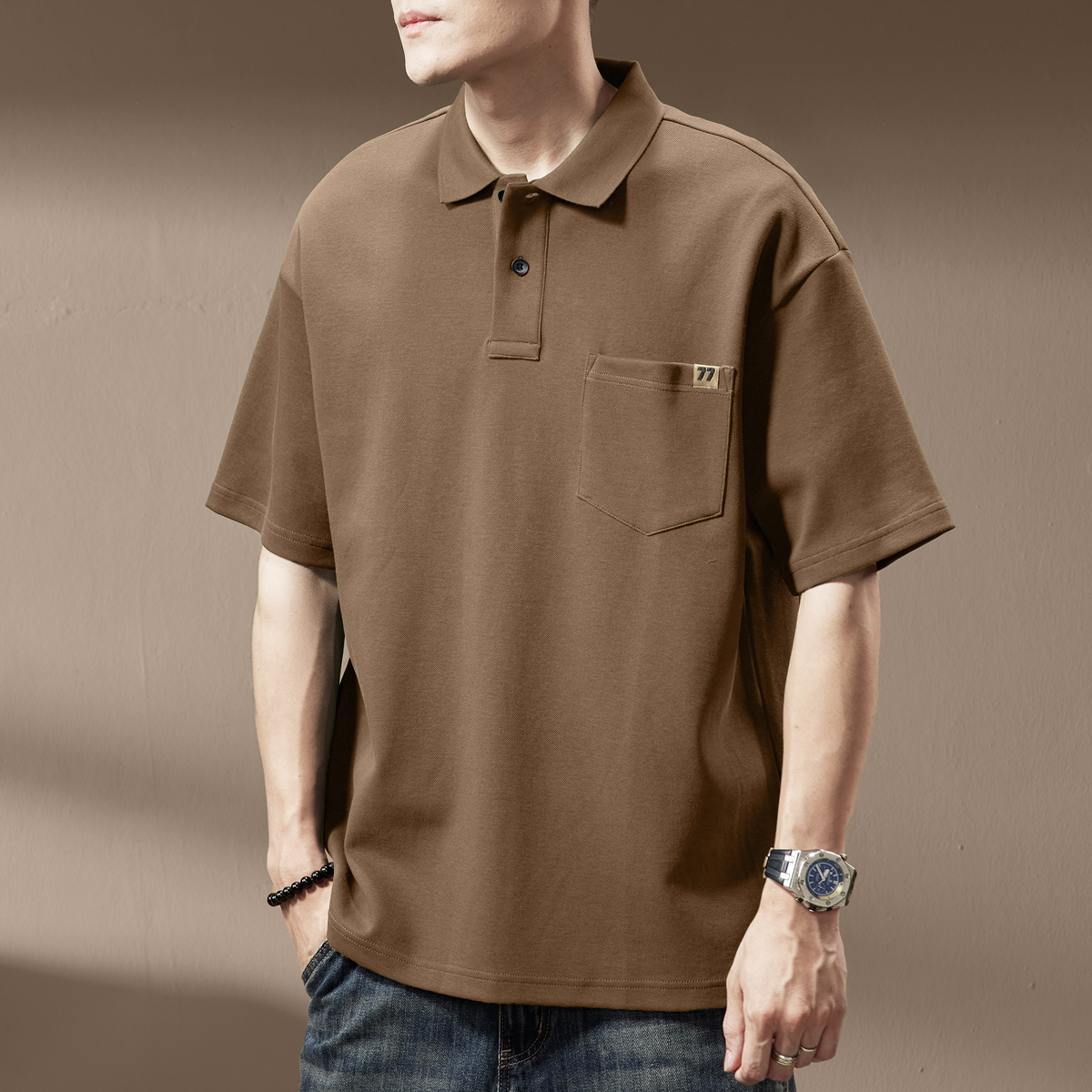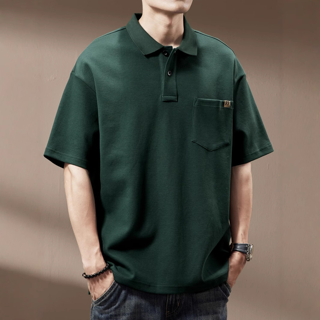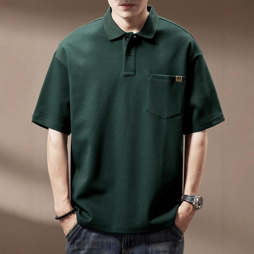 美式重磅简约墨绿色Polo衫短袖t恤男夏季宽松简约休闲翻领体恤潮