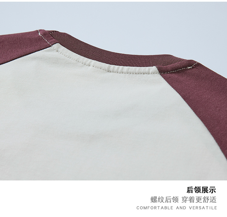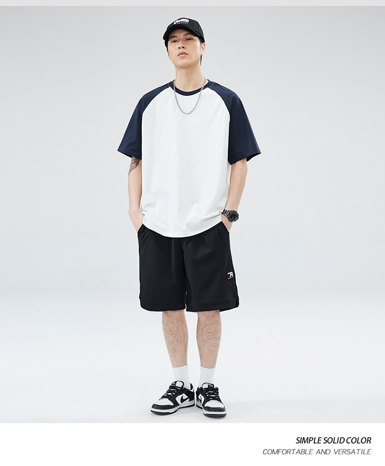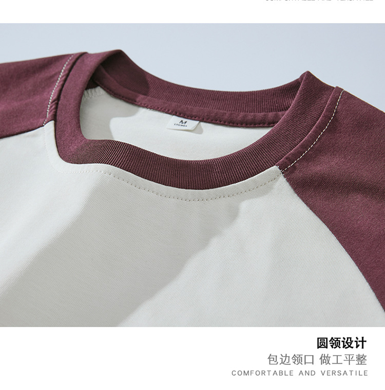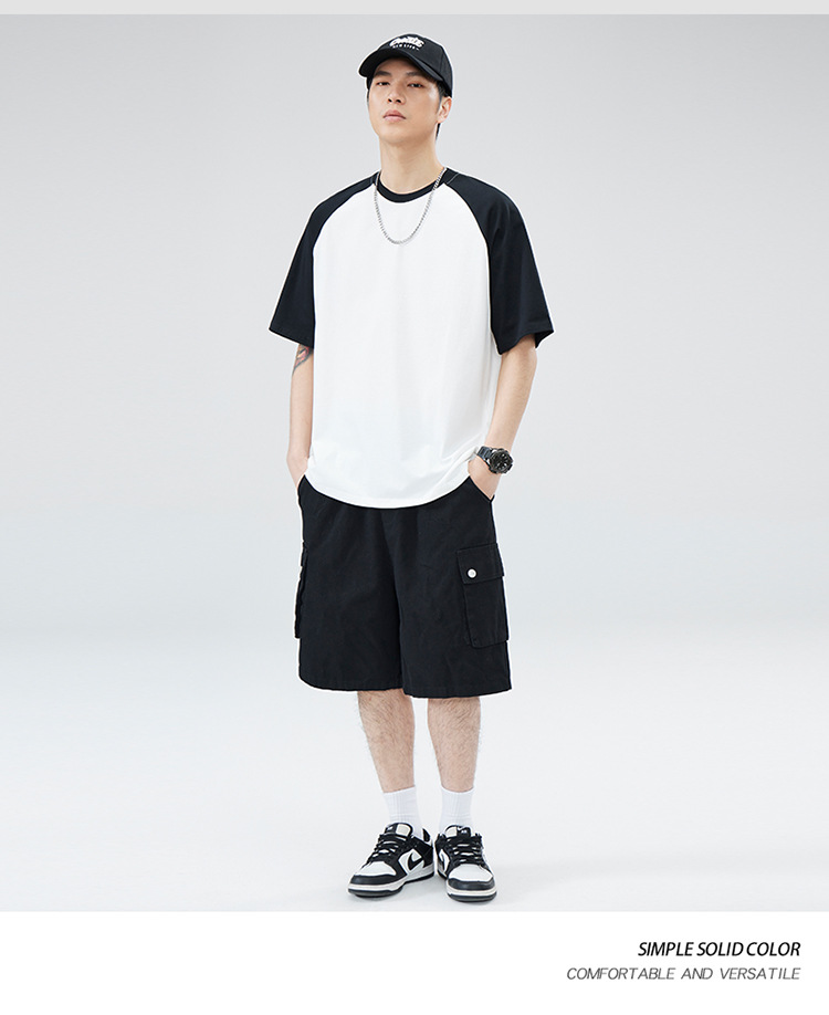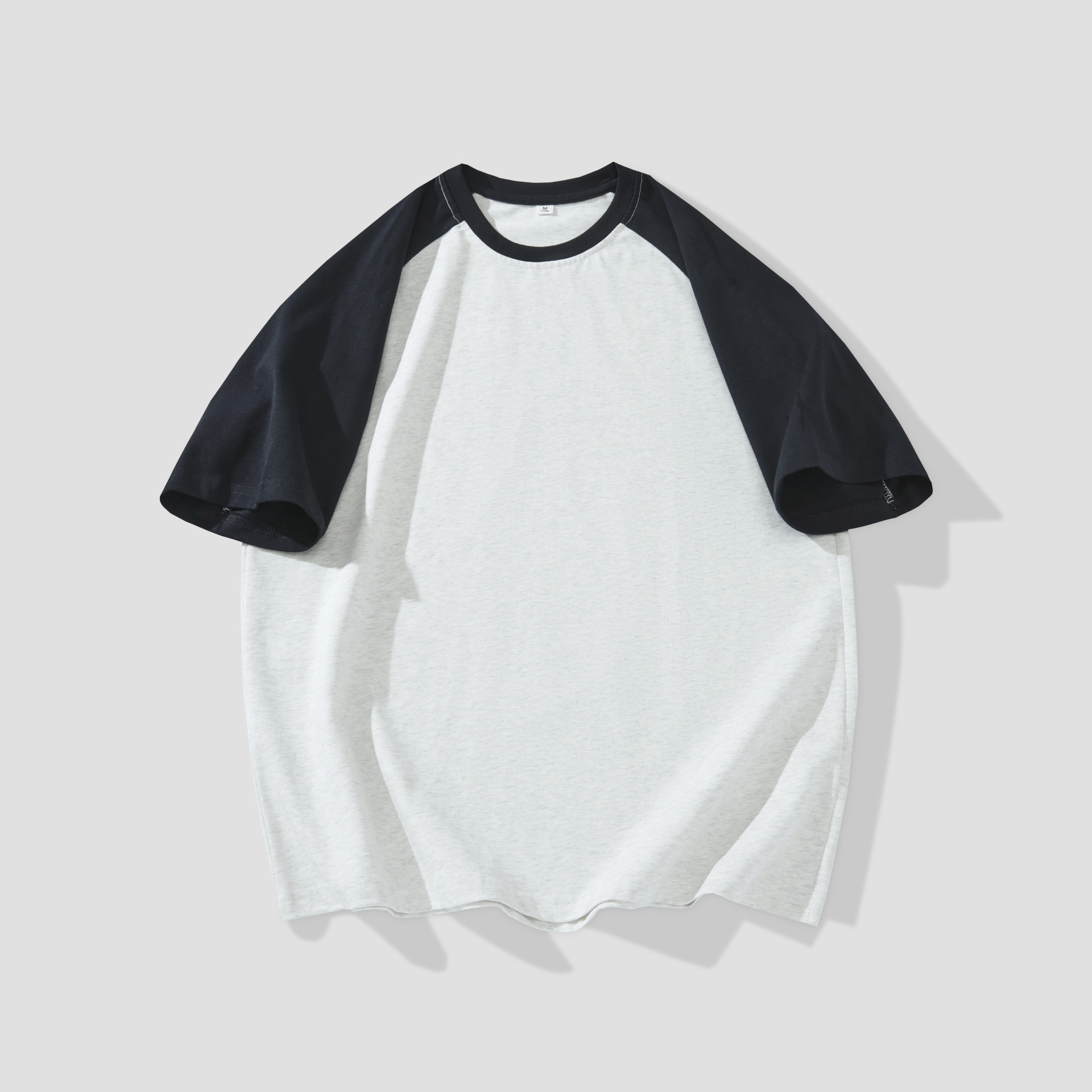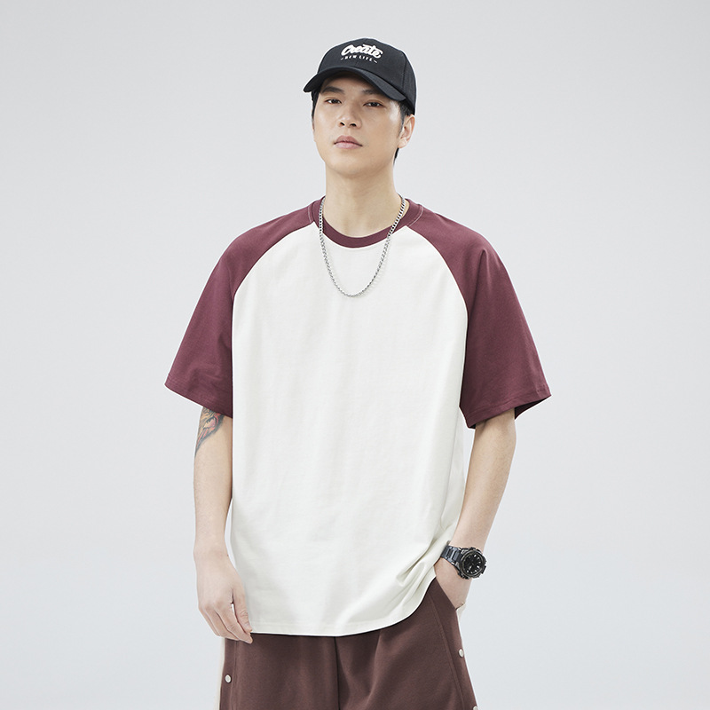 250G美式重磅插肩短袖t恤男士夏季潮牌宽松撞色休闲纯棉百搭体恤