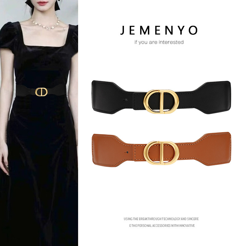 新款百搭时尚女士腰封装饰西装大衣松紧弹力腰带黑色简约皮带