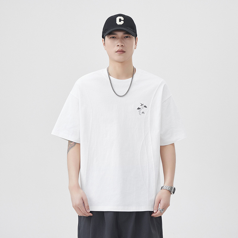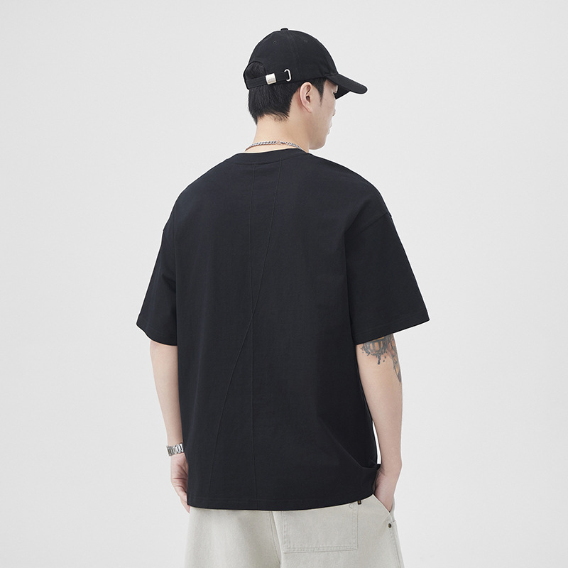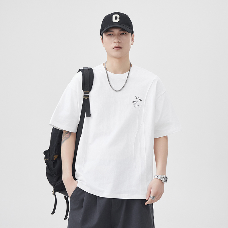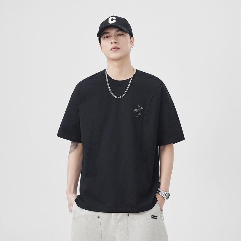 设计感250g新疆棉短袖T恤男2025夏季新款宽松大码五分袖体恤衫潮