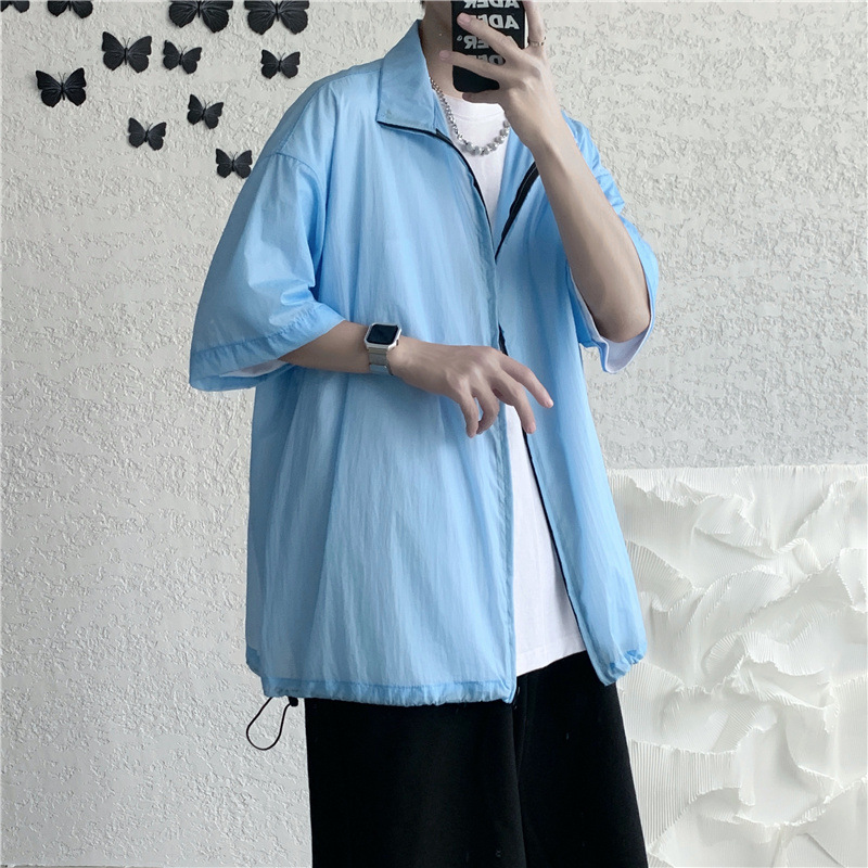夏季薄款防晒衣男ins潮牌宽松透气冰丝半袖外套港风学生休闲上衣