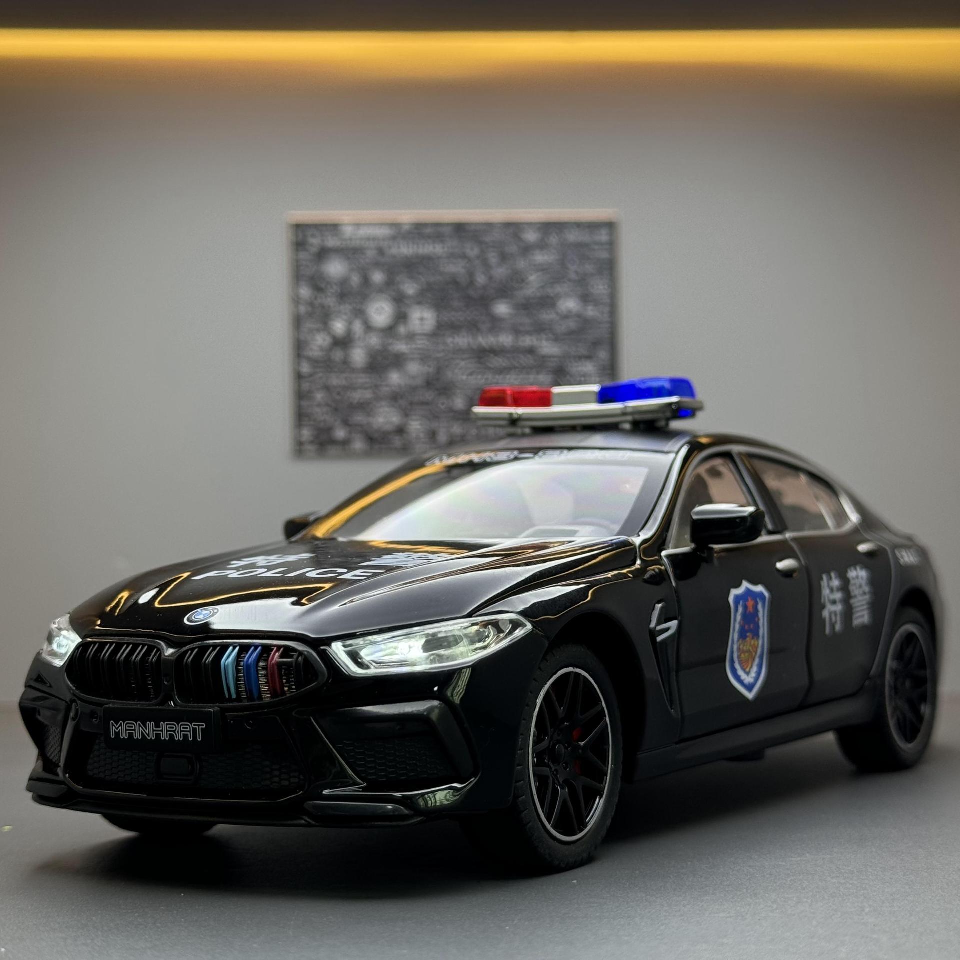 车致合金车模1:24保马M8警车声光回力玩具车音效模型摆件
