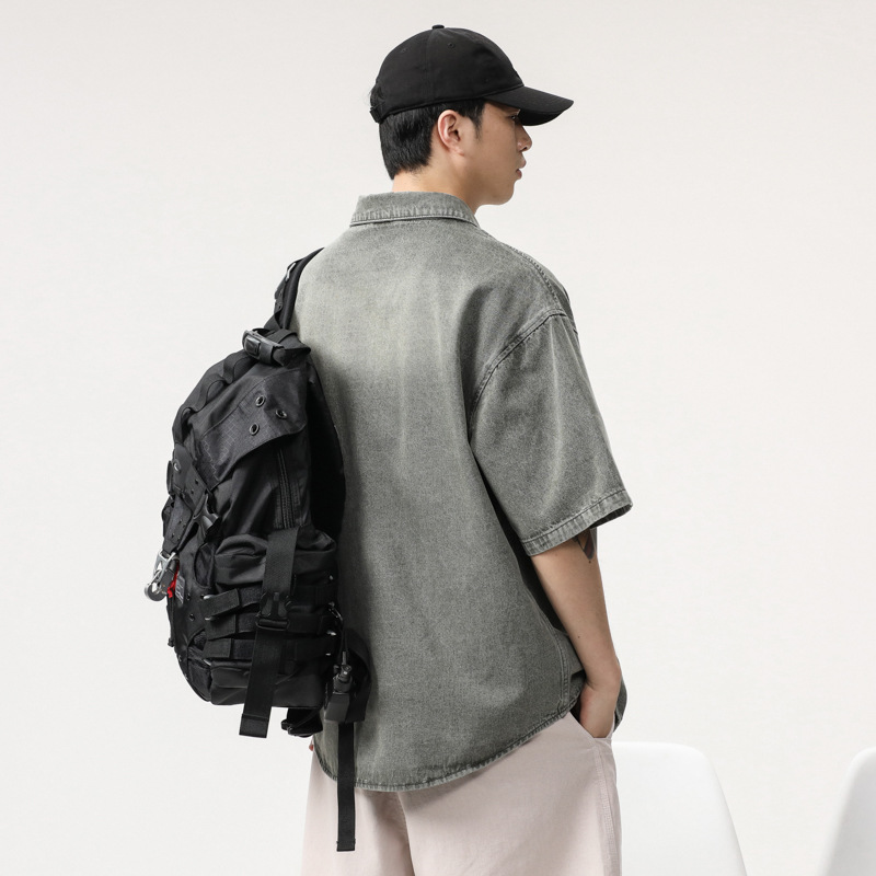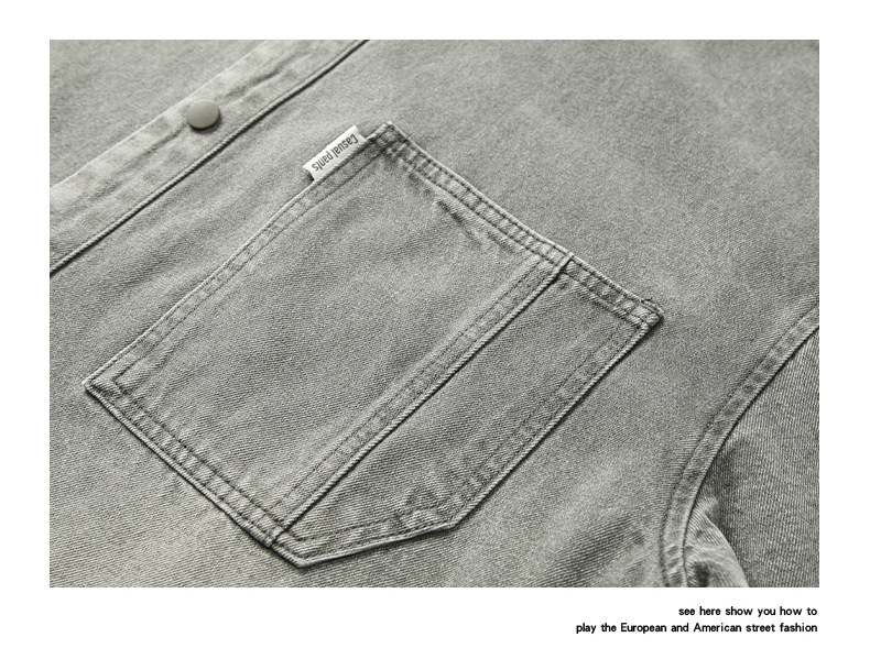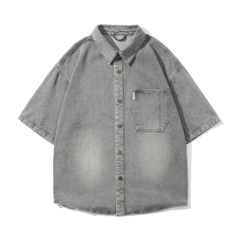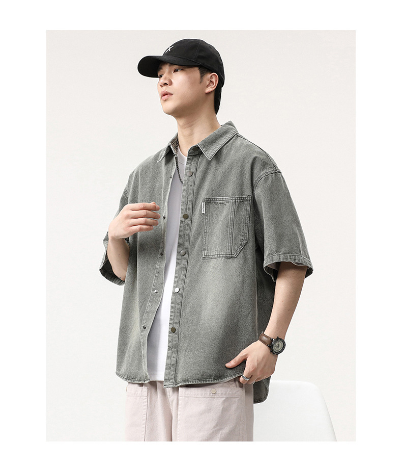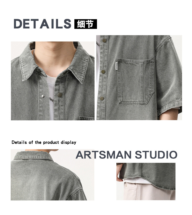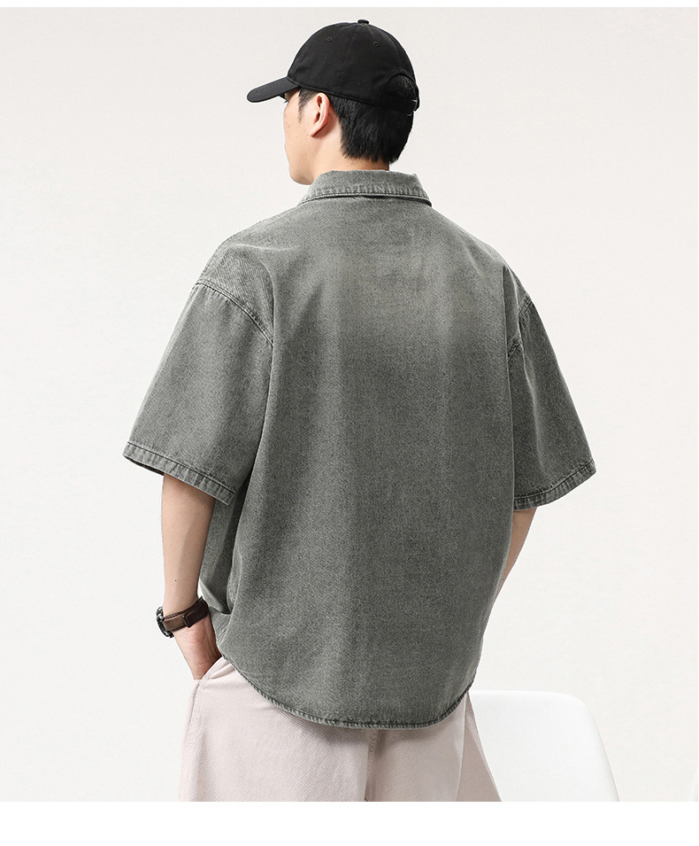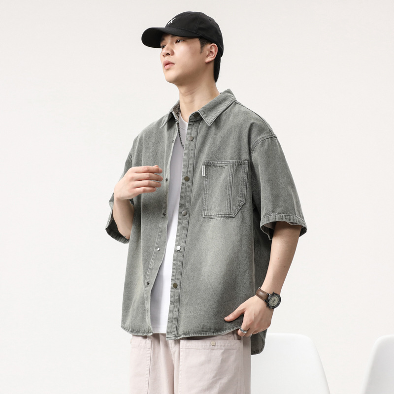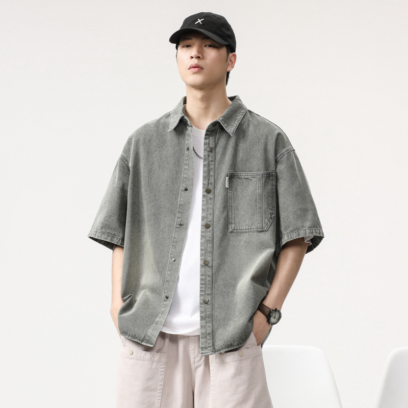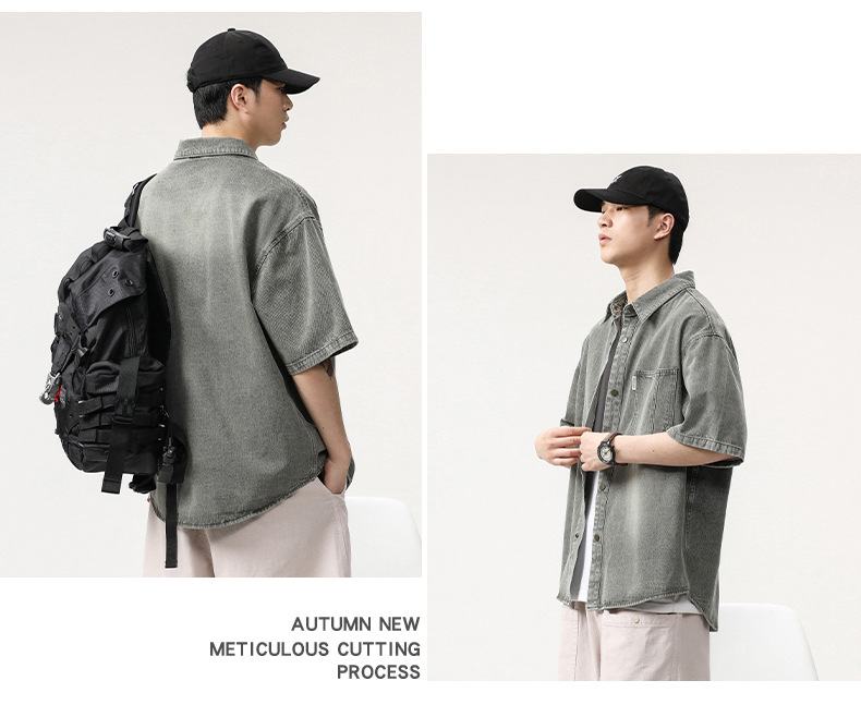 美式复古重工洗水牛仔短袖衬衫外套男高级感2025新款男生痞帅寸衣