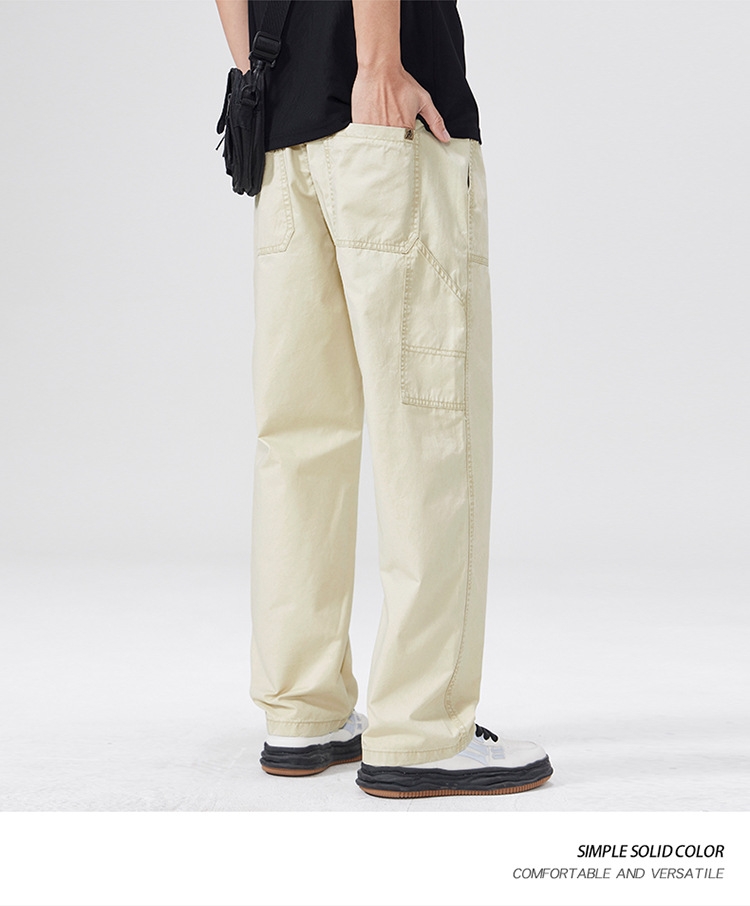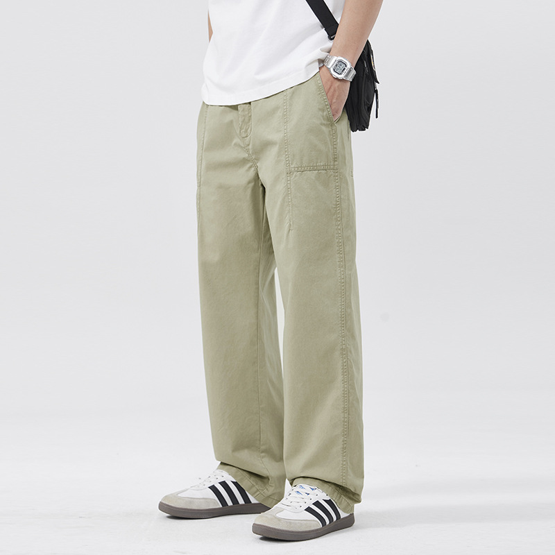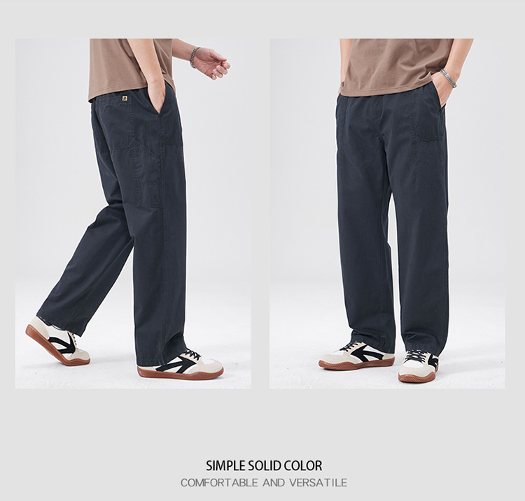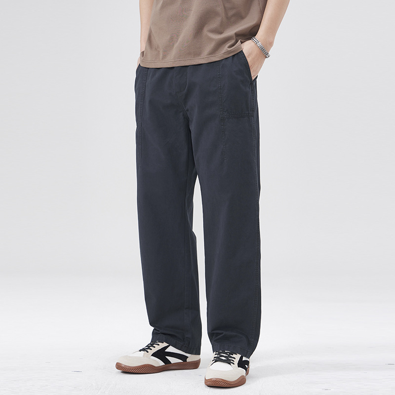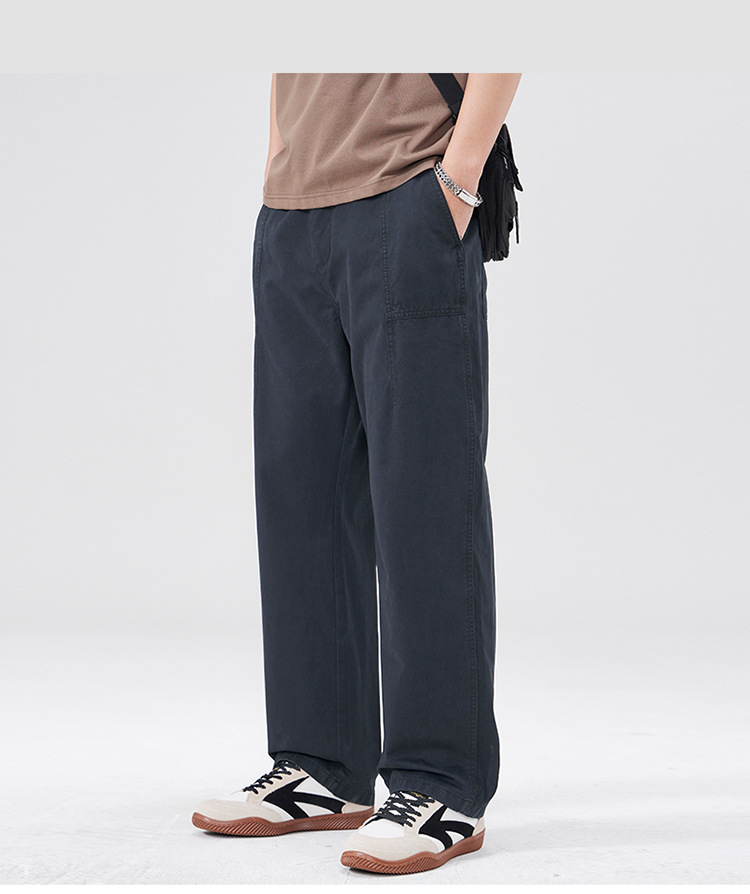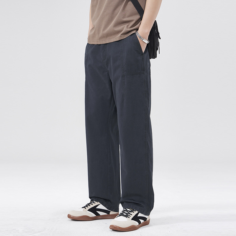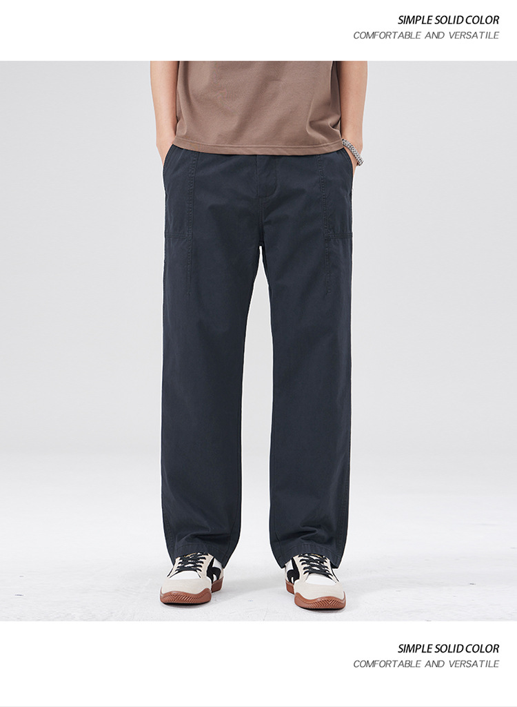 春季日系复古纯棉休闲裤男士2025春夏新款宽松拼接工装直筒裤