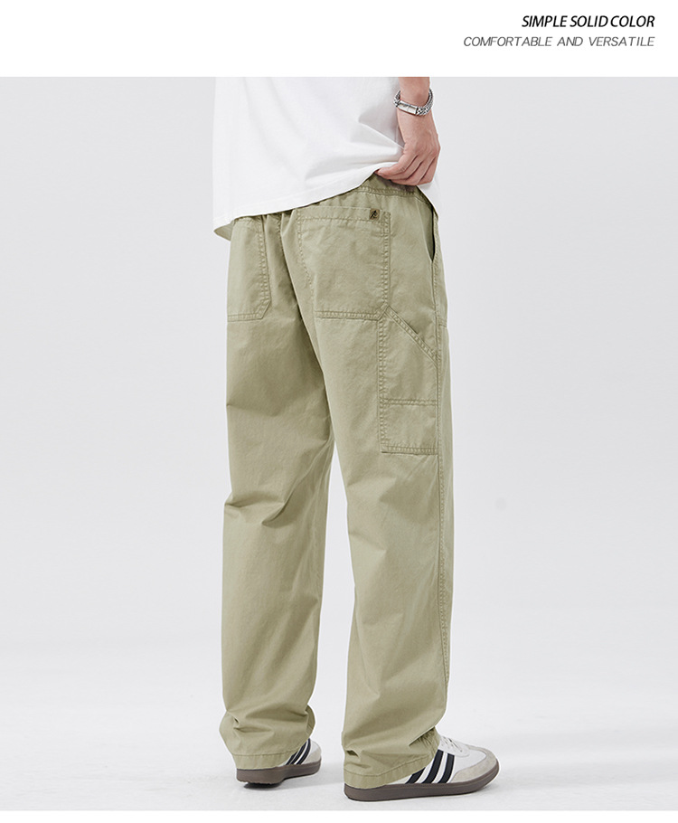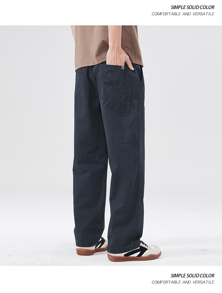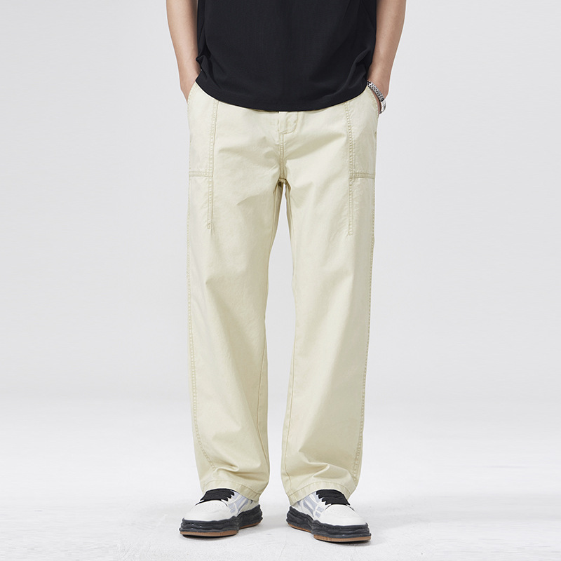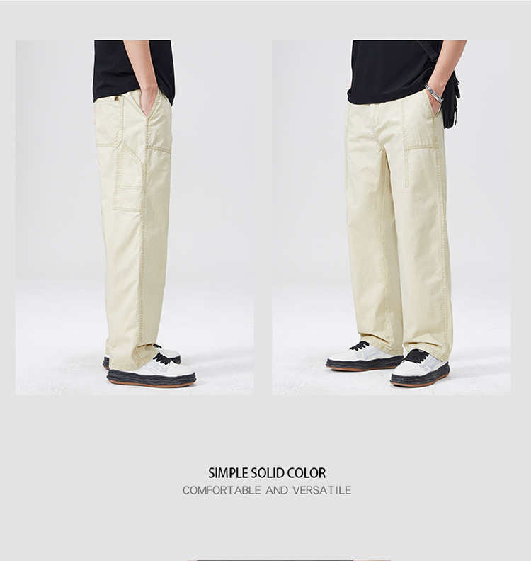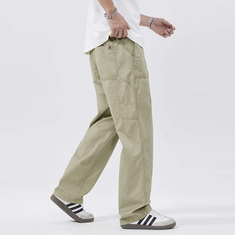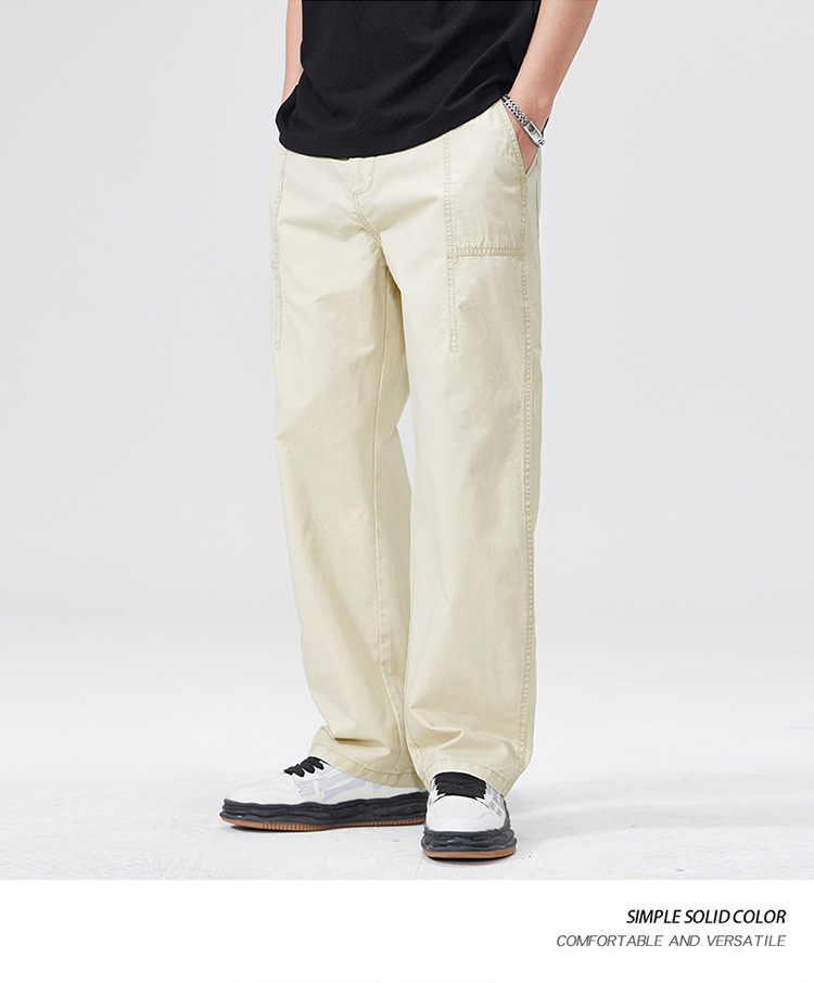 春季日系复古纯棉休闲裤男士2025春夏新款宽松拼接工装直筒裤