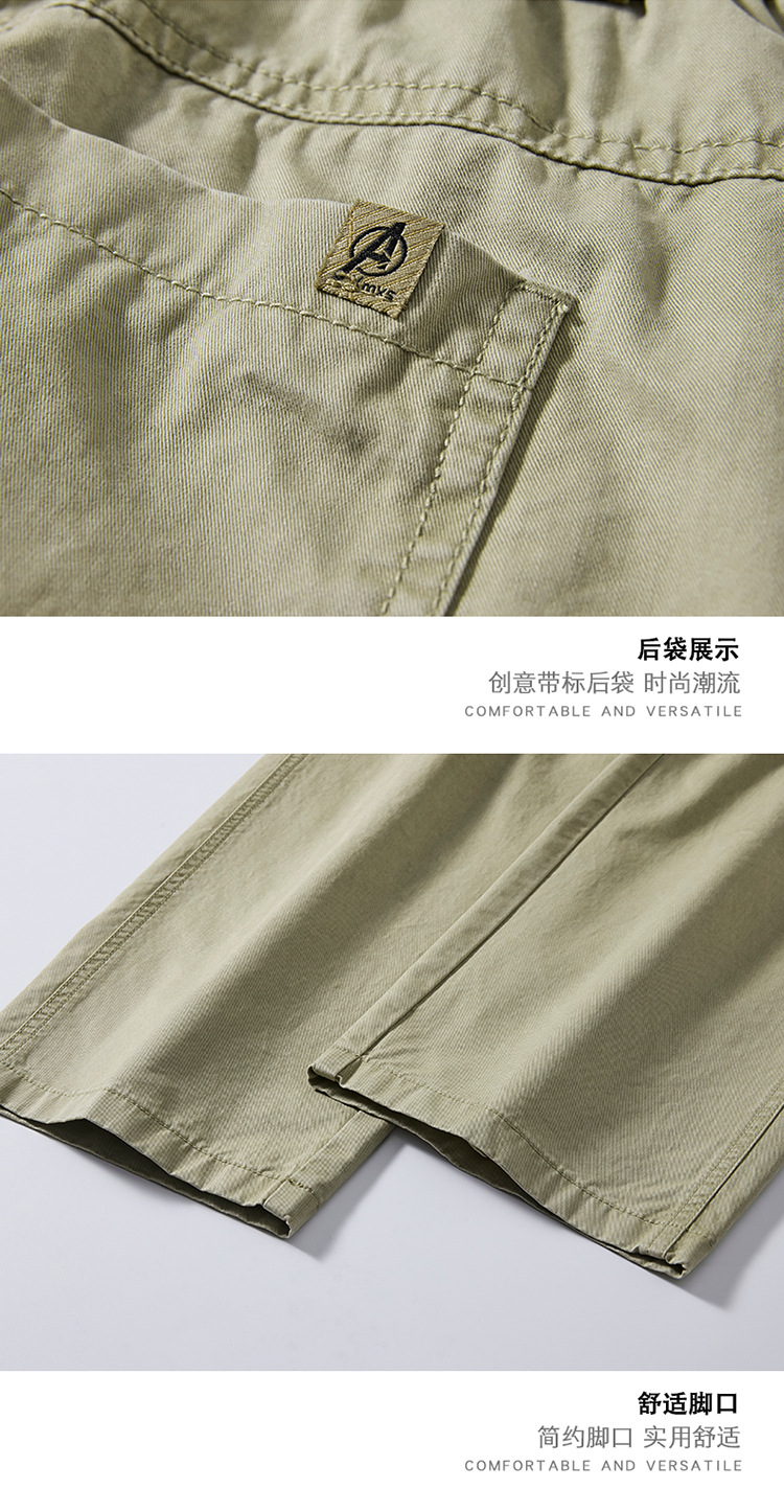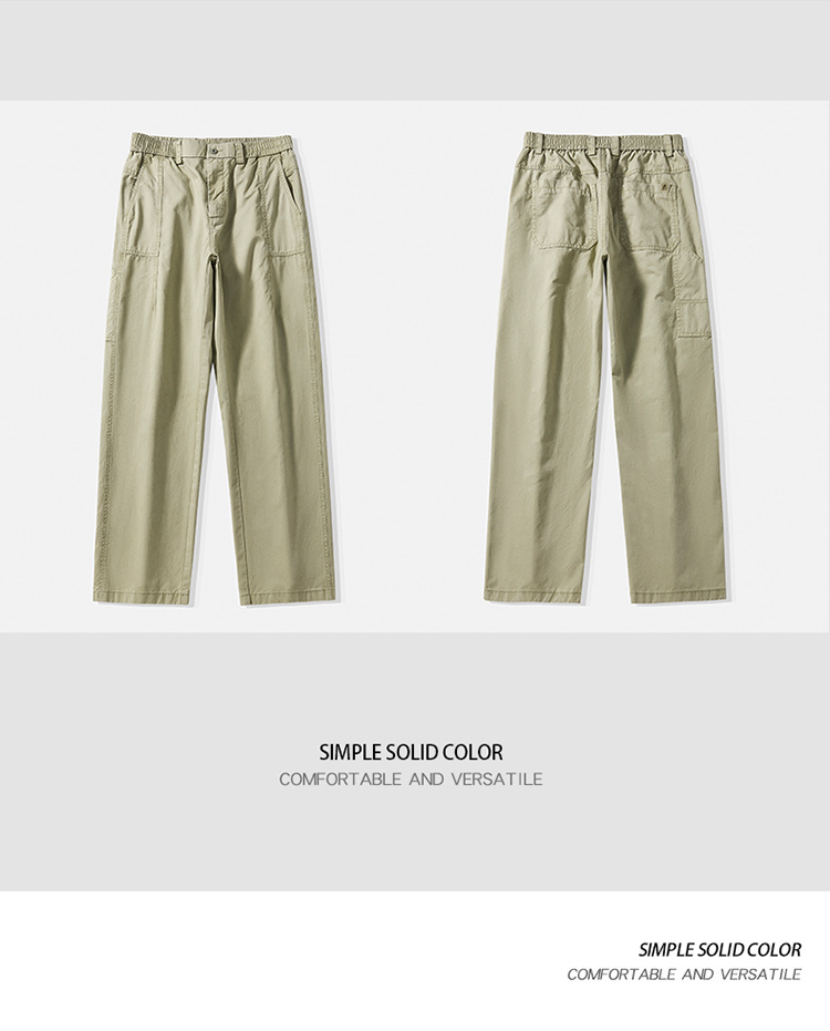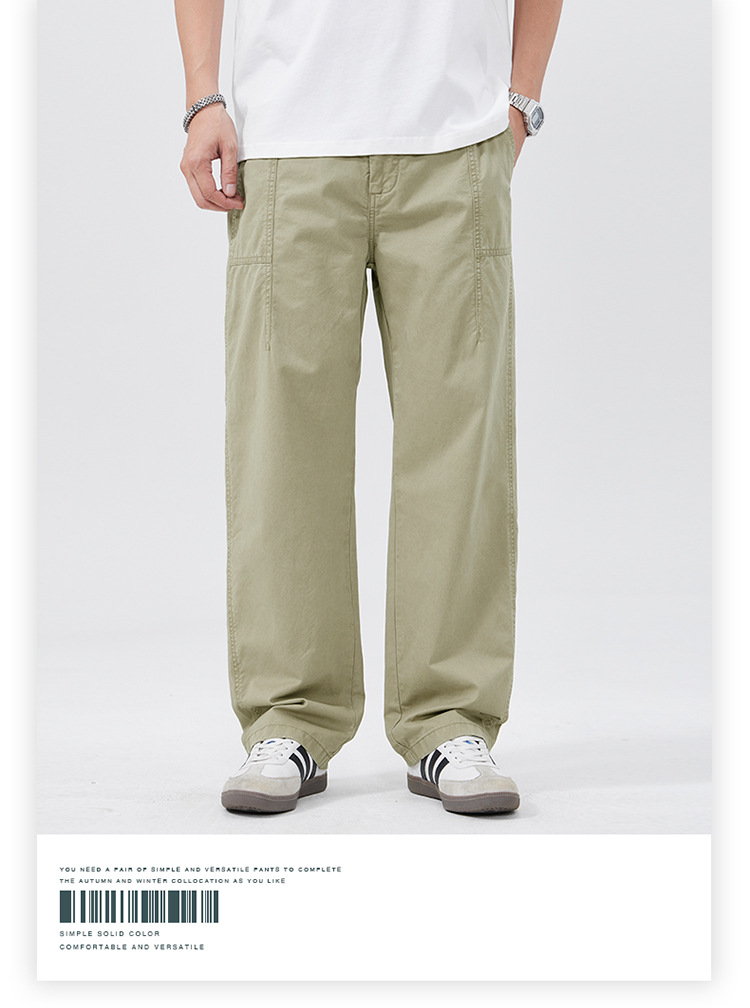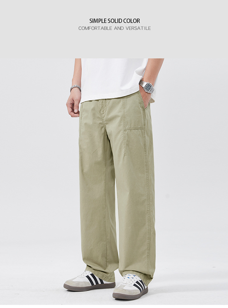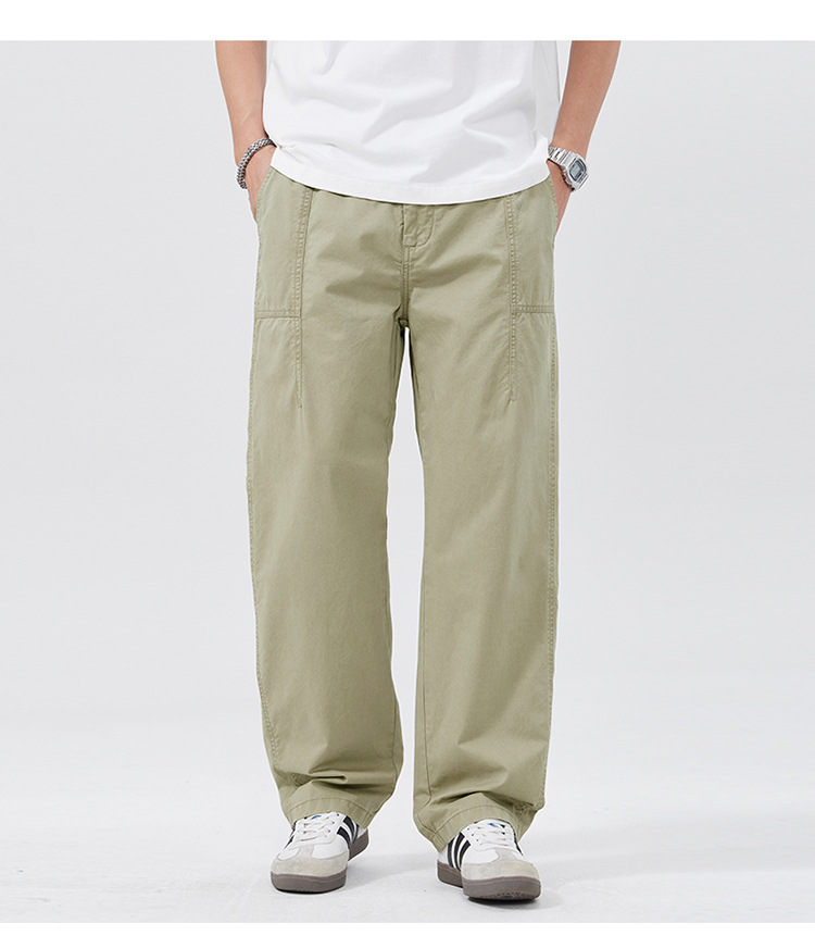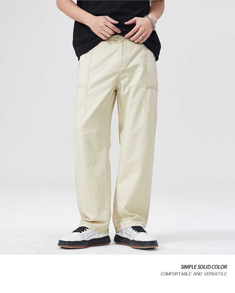春季日系复古纯棉休闲裤男士2025春夏新款宽松拼接工装直筒裤