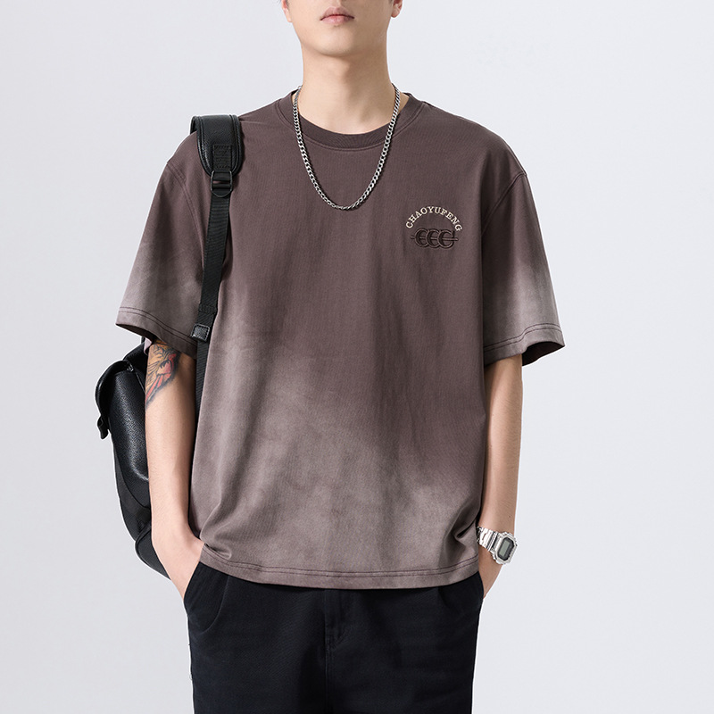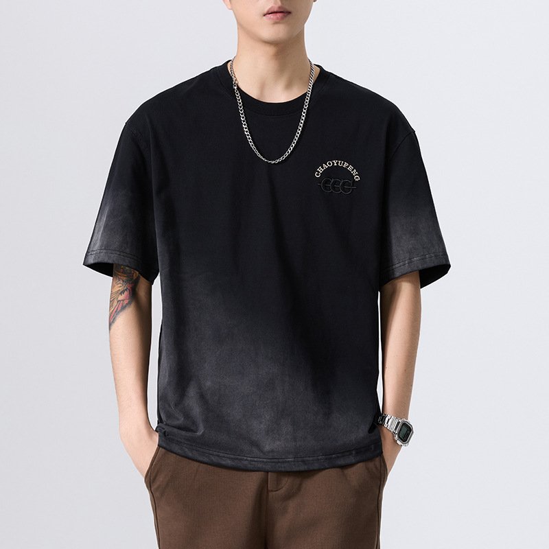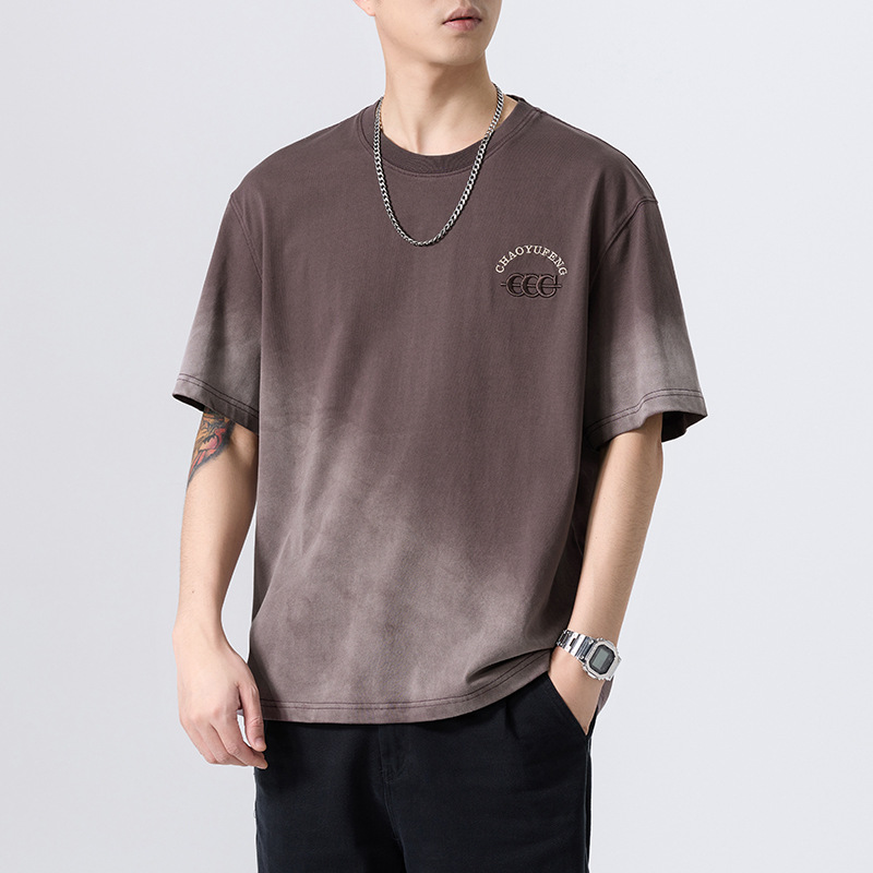 重磅纯棉短袖t恤男士2025新款夏季宽松大码高端衣服美式渐变体恤