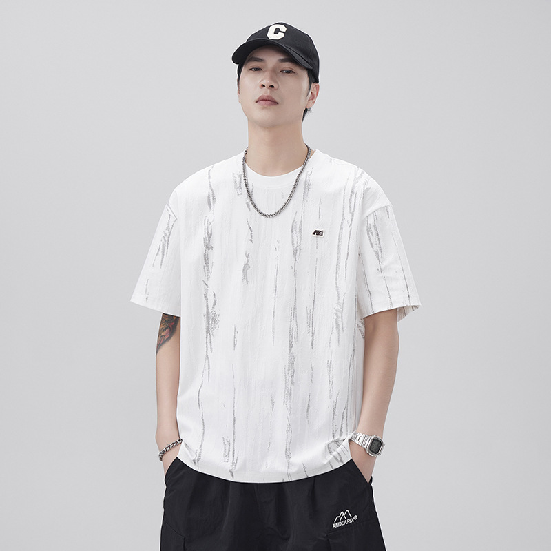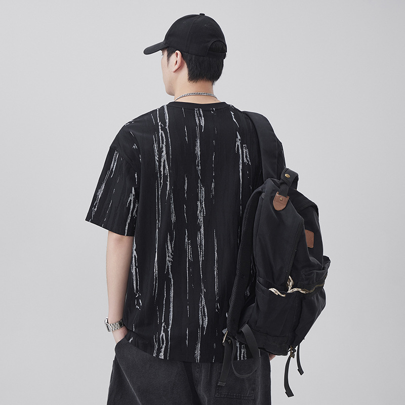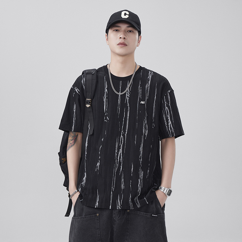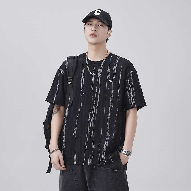 复古扎染圆领短袖t恤男2025夏季新款国潮水墨染宽松休闲半袖体恤