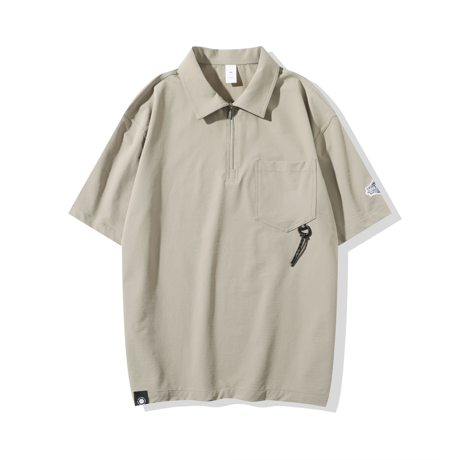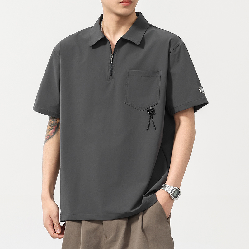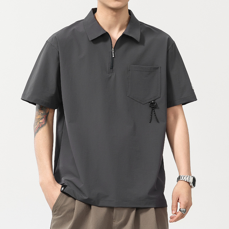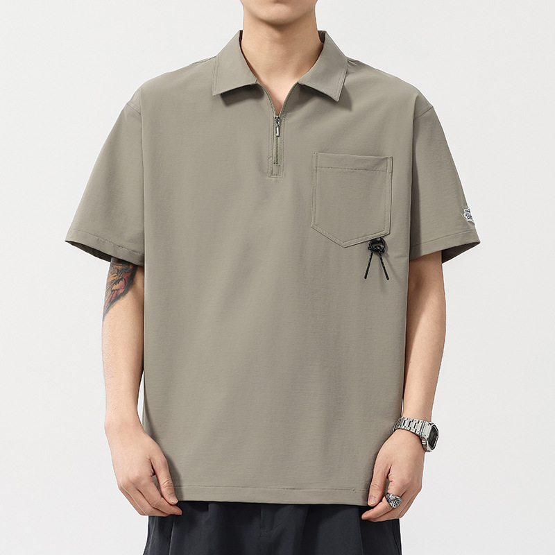 高端美式半拉链翻领短袖Polo衫男夏季机能口袋宽松休闲工装体恤男