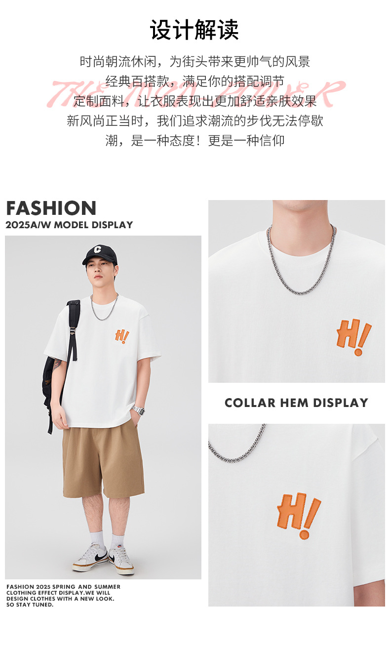 270g重磅趣味绣花纯棉短袖T恤男潮夏季宽松透气户外休闲半袖上衣