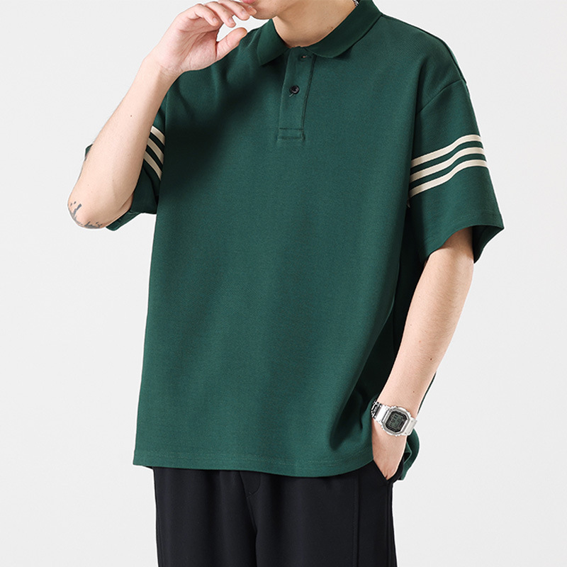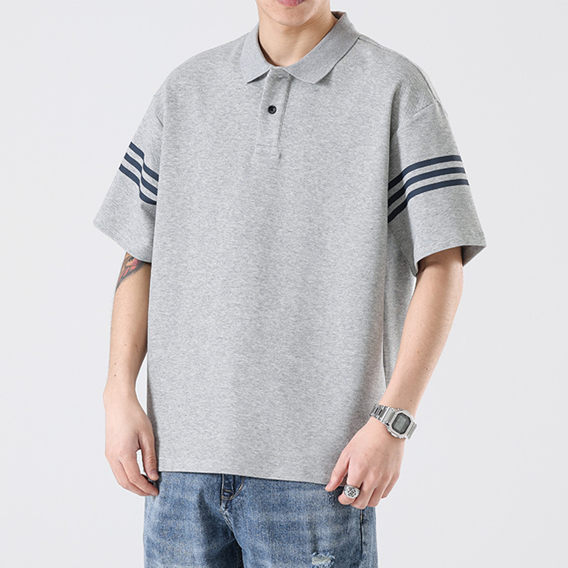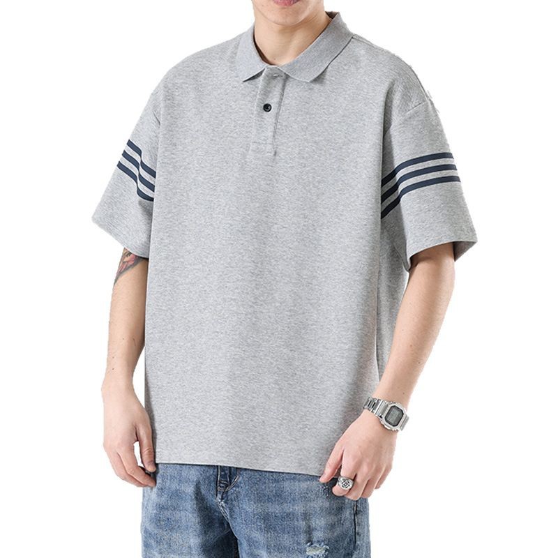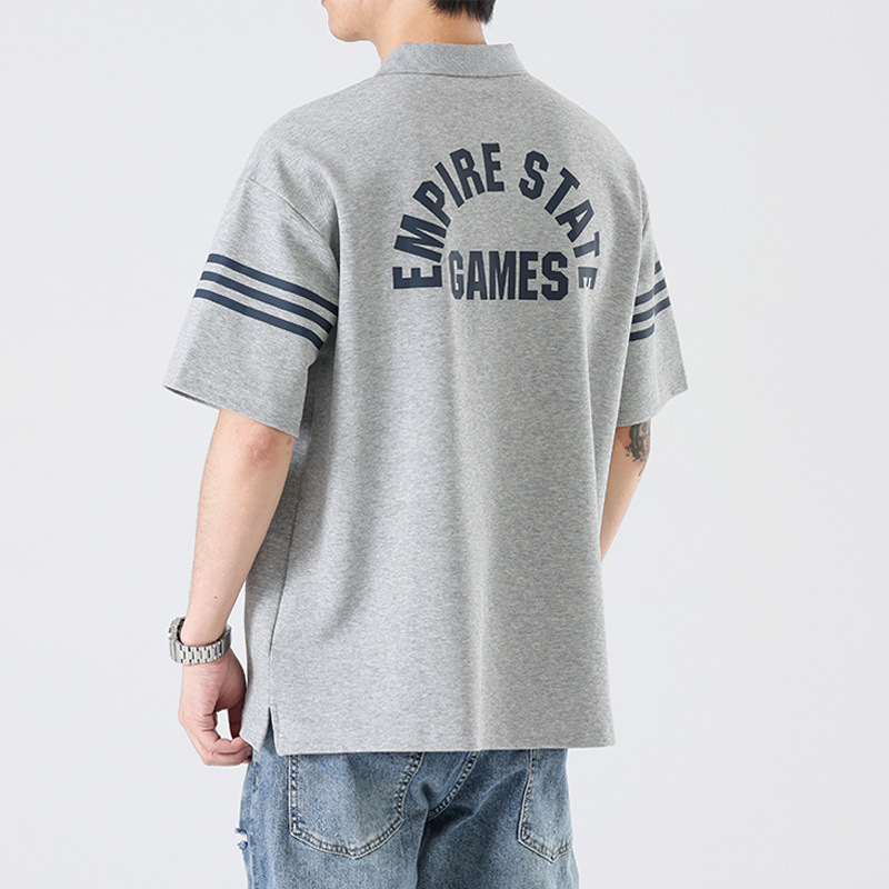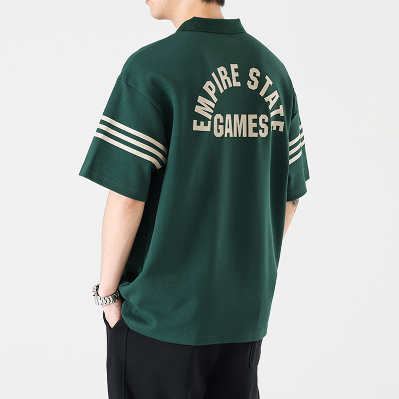 200g重磅珠地美式复古印花polo领T恤男士春夏季国潮运动宽松短袖