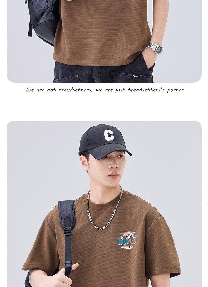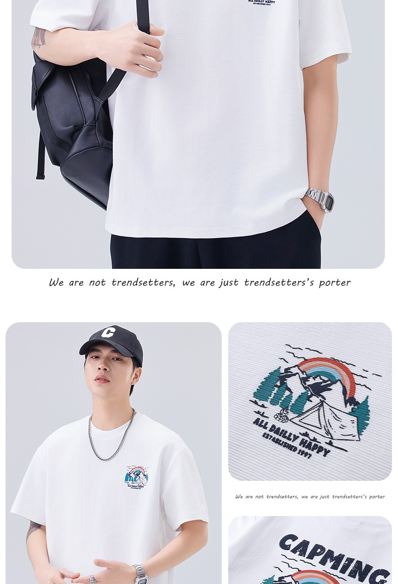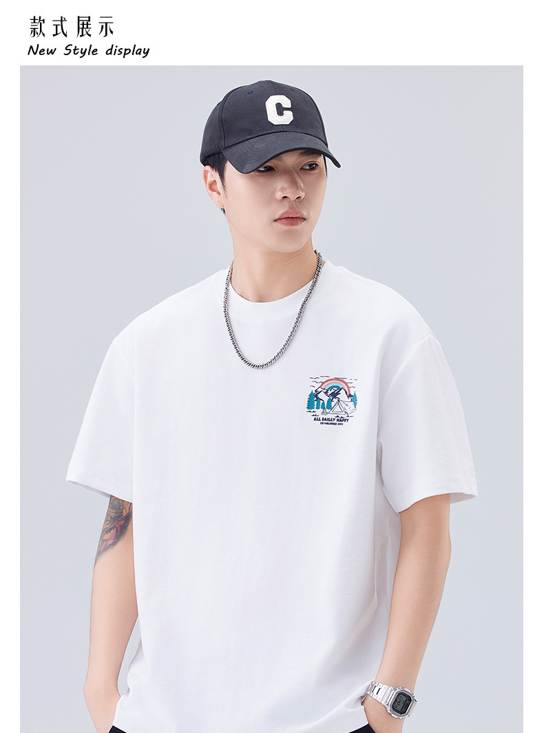230g重磅夏季短袖t恤男士宽松美式复古ins印花圆领半袖体恤衫男装