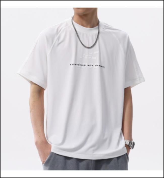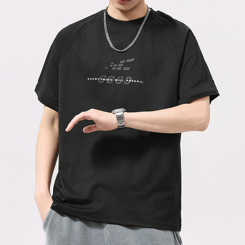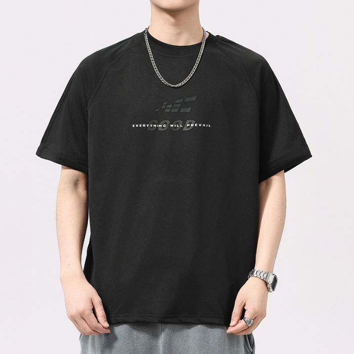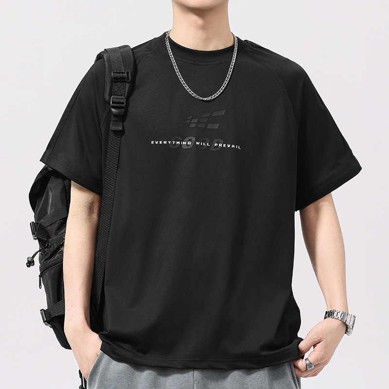 高端美式运动冰丝凉感印花短袖T恤男夏季宽松网面透气半袖体恤男