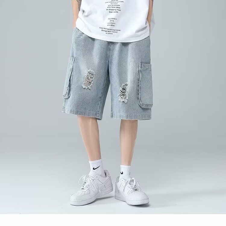 牛仔短裤男工装五分裤宽松胖子潮流百搭日系复古韩版夏季男士中裤