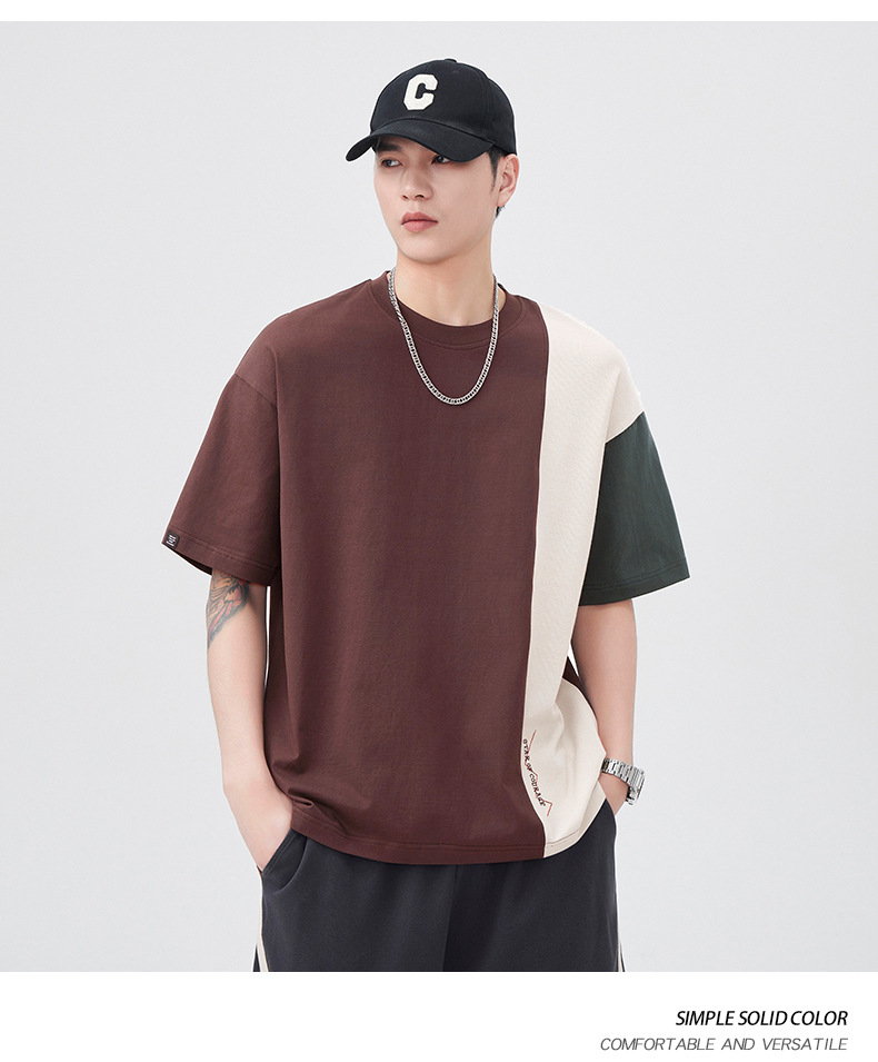 拼色设计感短袖男夏季2025新款美式复古250g重磅t恤男宽松上衣男