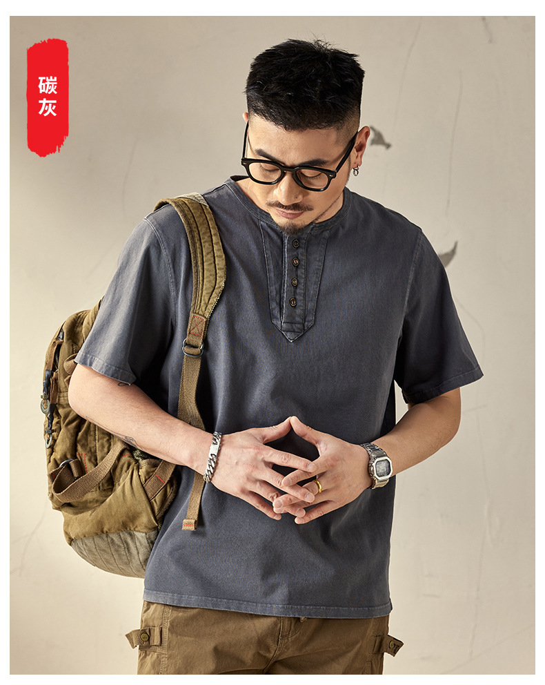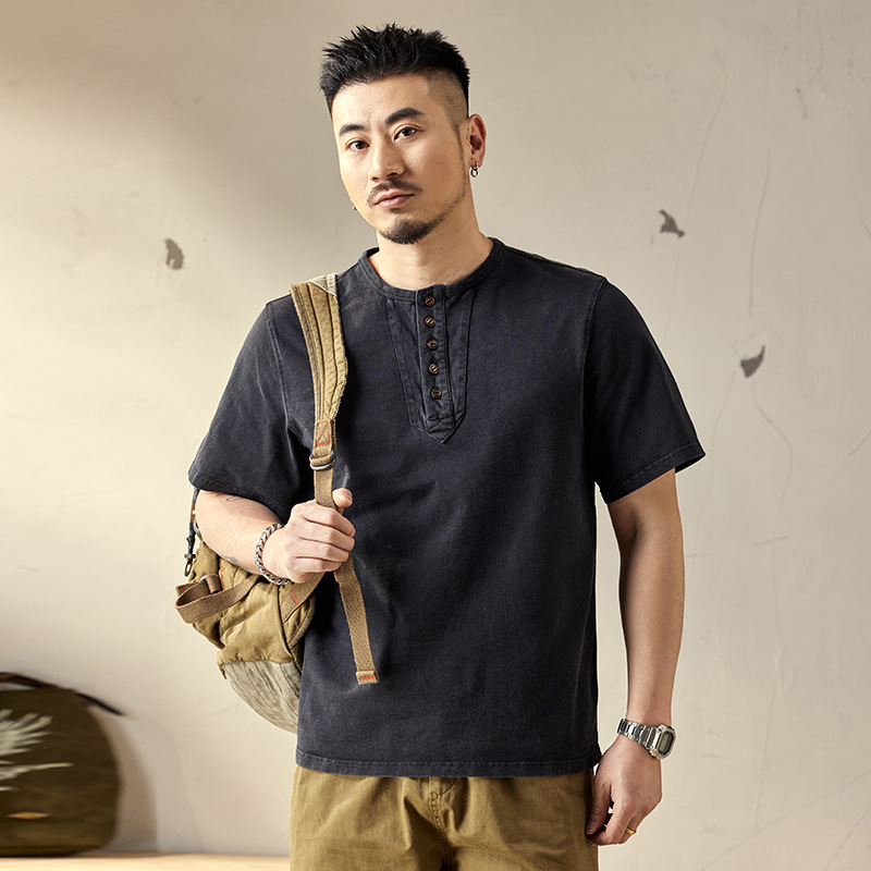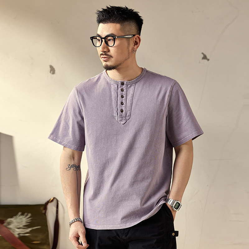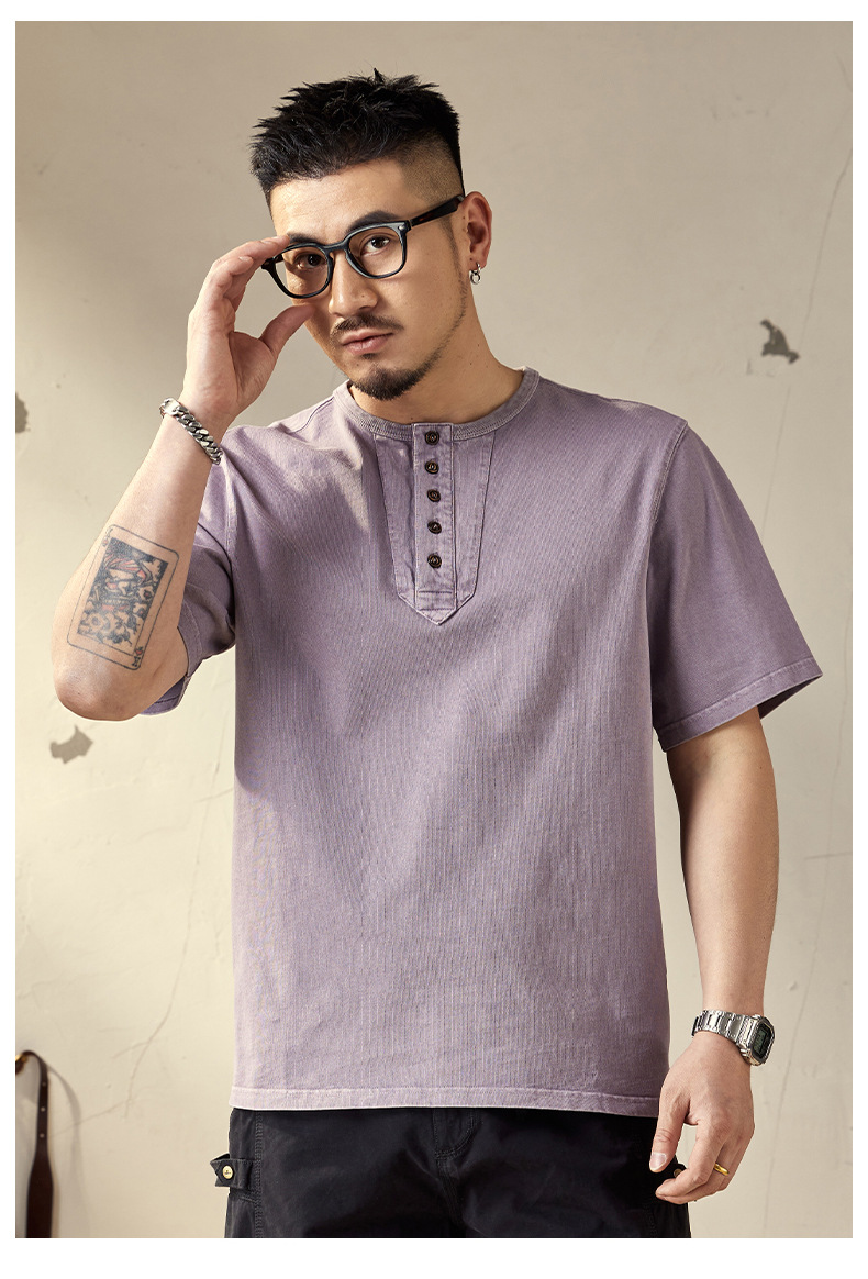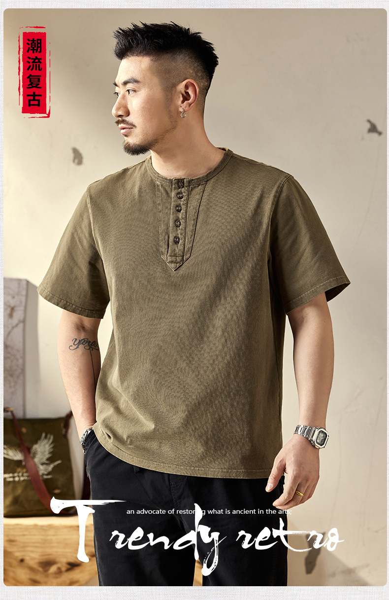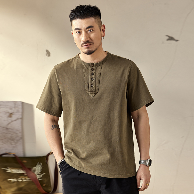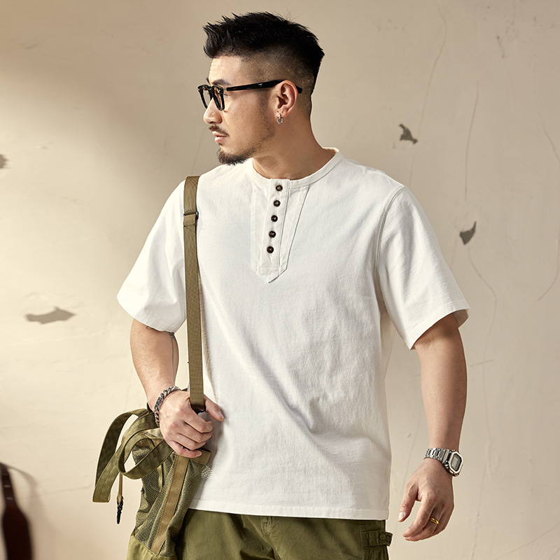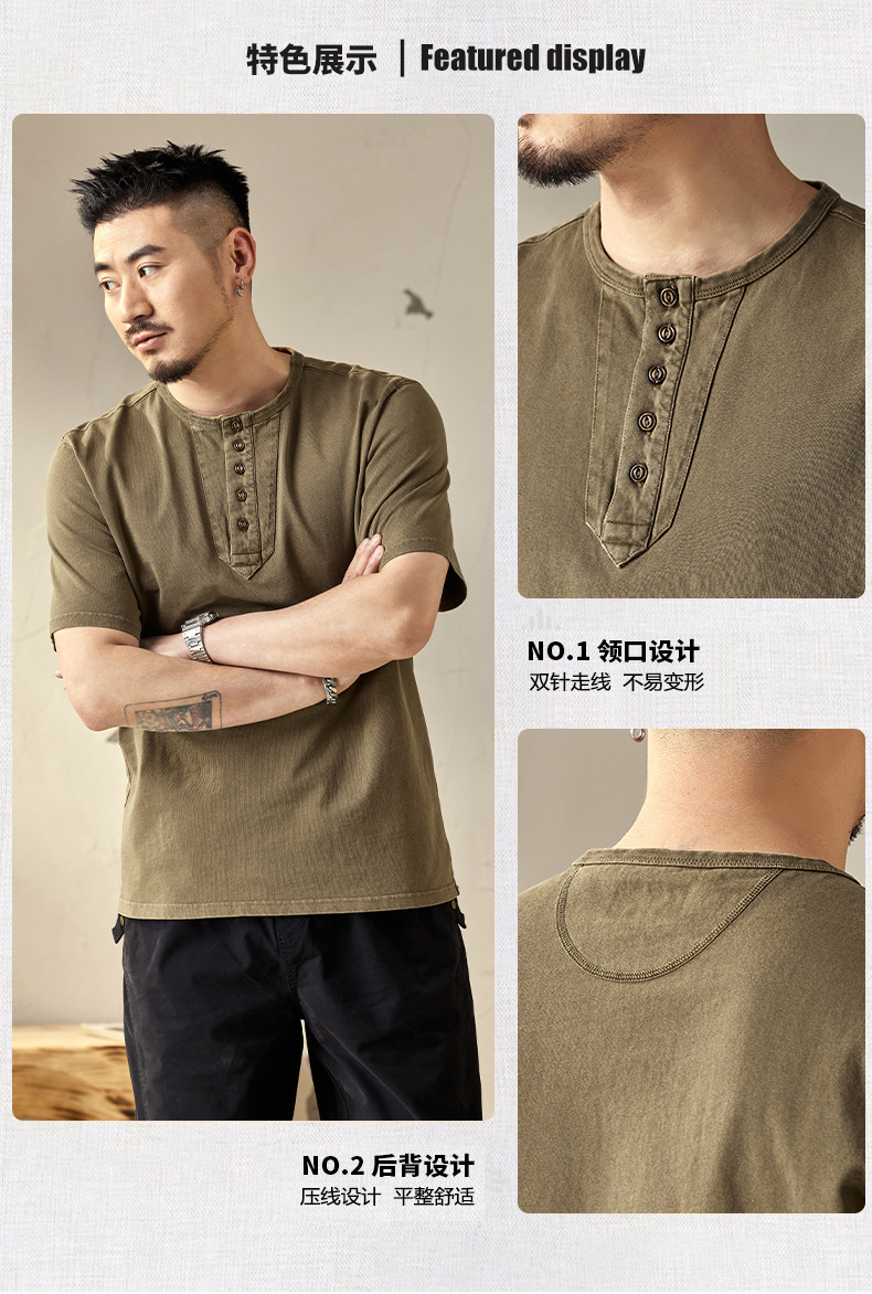 320g夏季2025重磅男士短袖t恤纯棉大码半袖男T美式休闲亨利领体恤