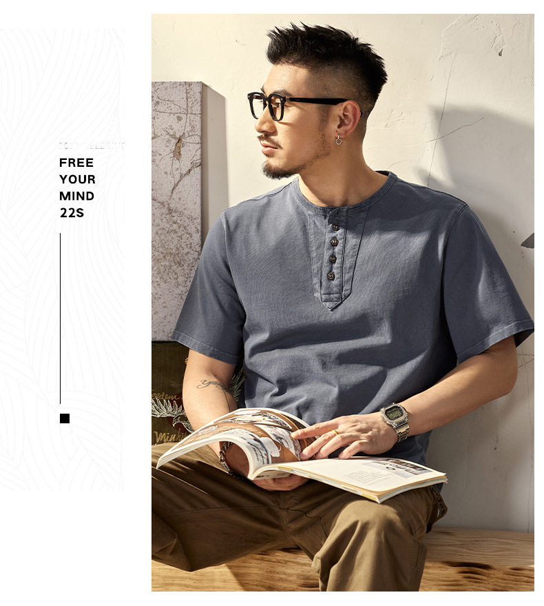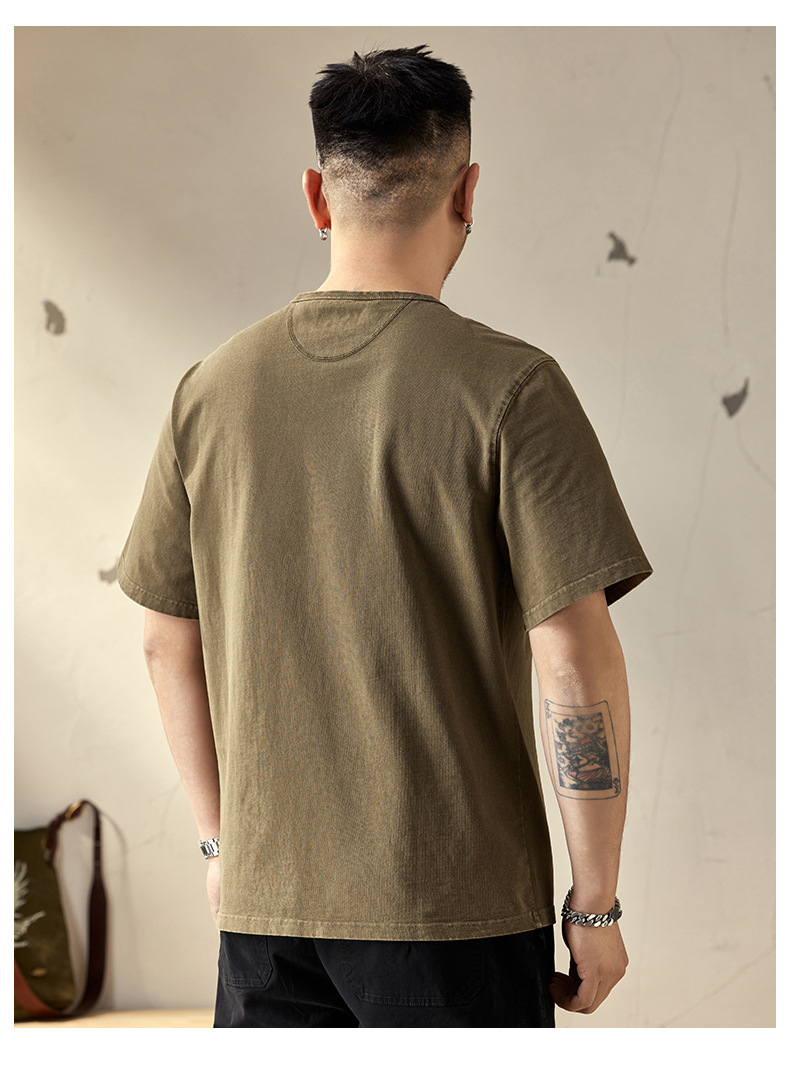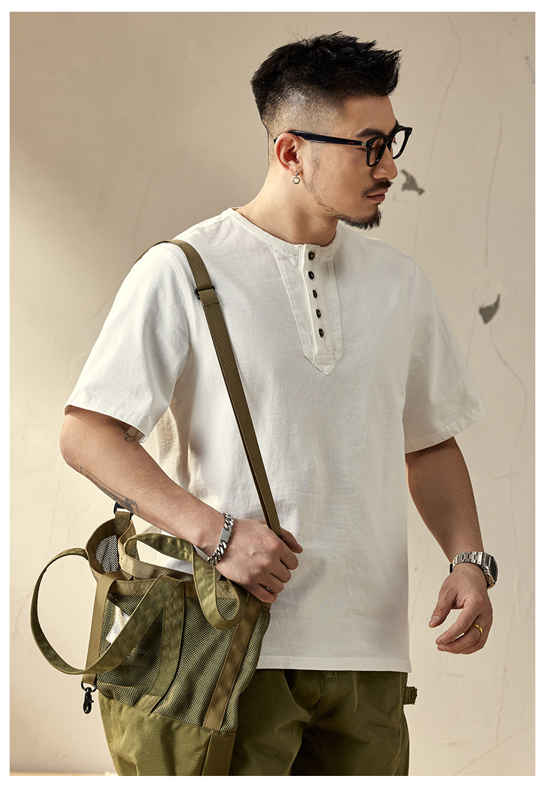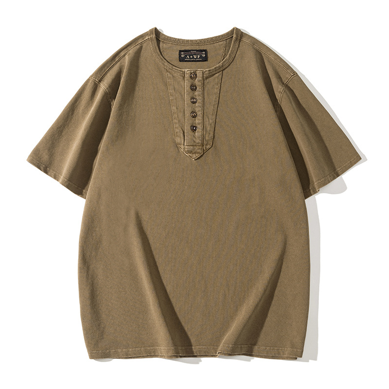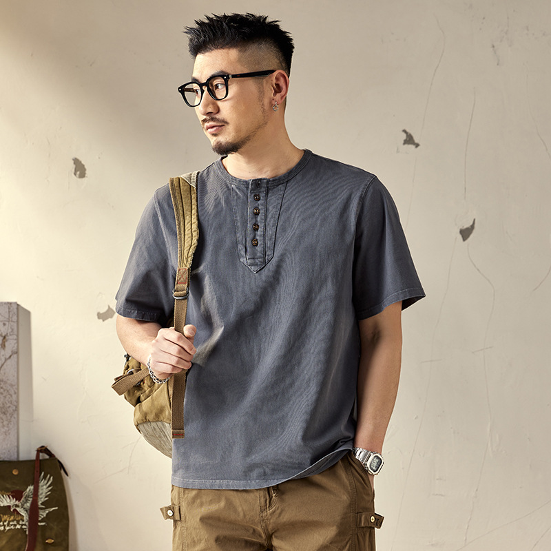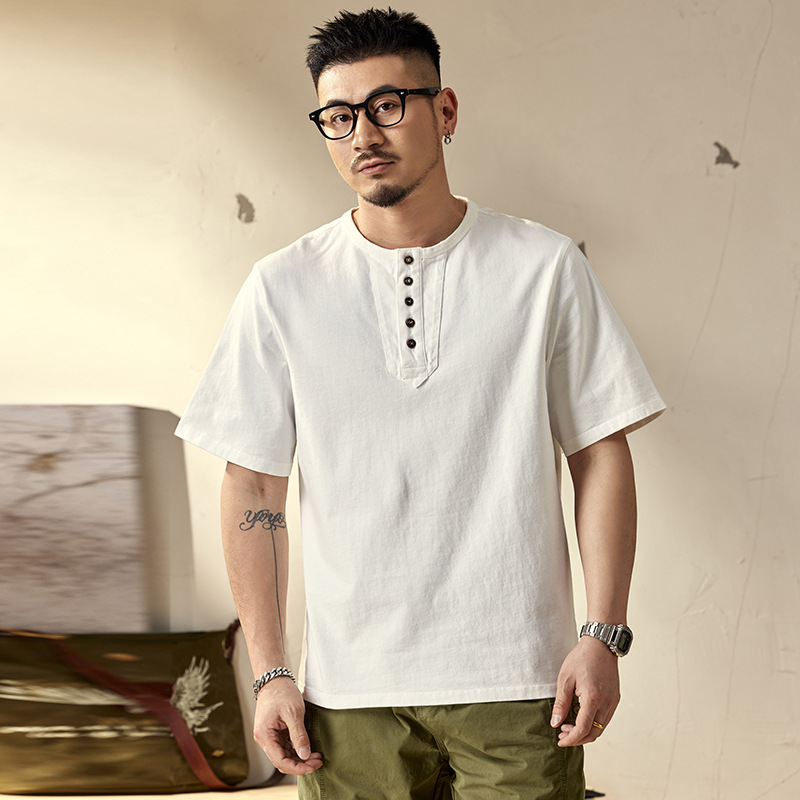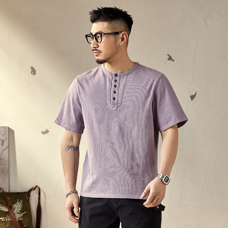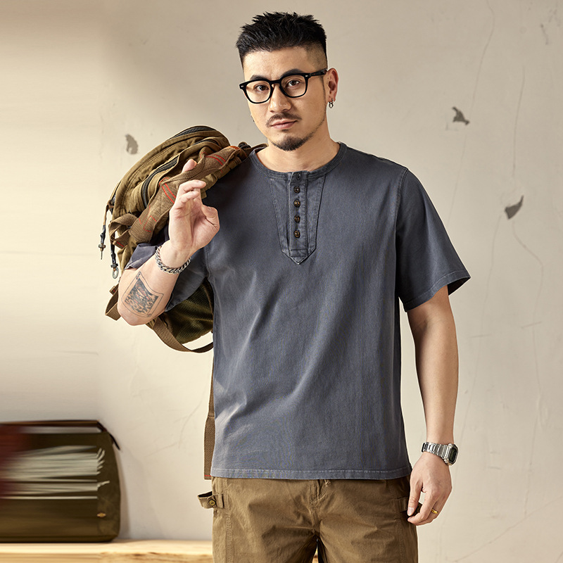 320g夏季2025重磅男士短袖t恤纯棉大码半袖男T美式休闲亨利领体恤