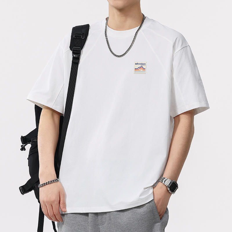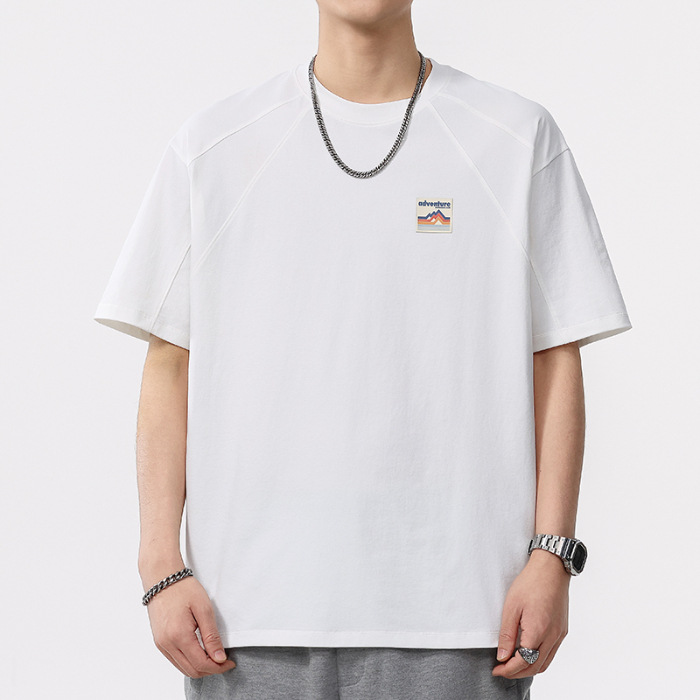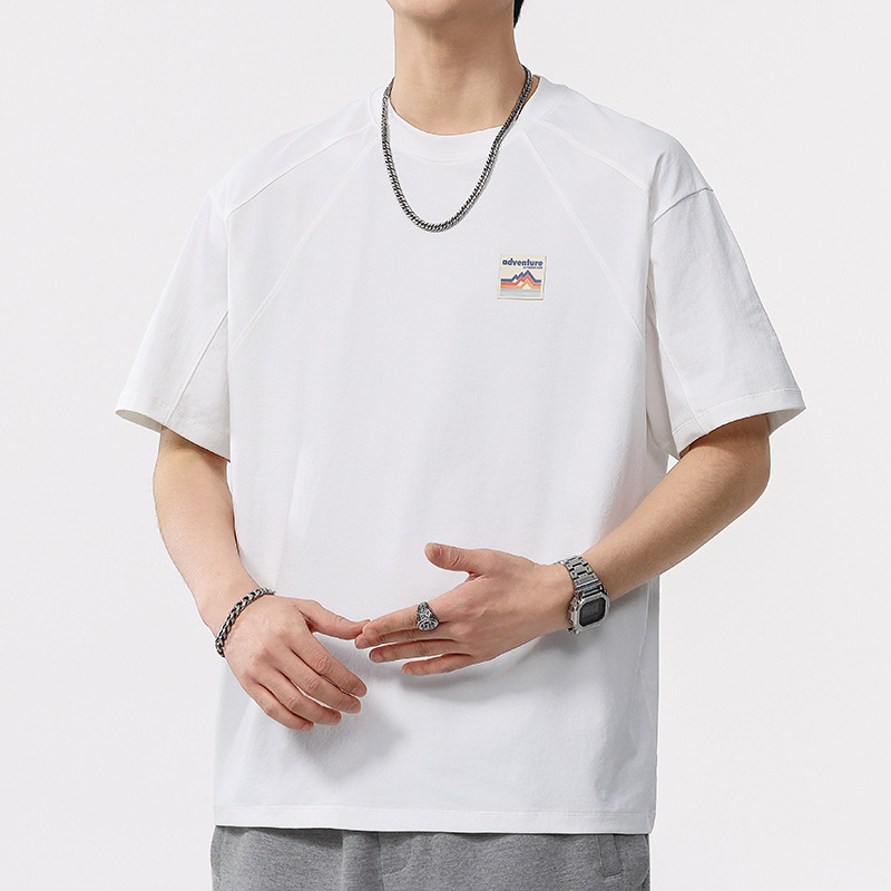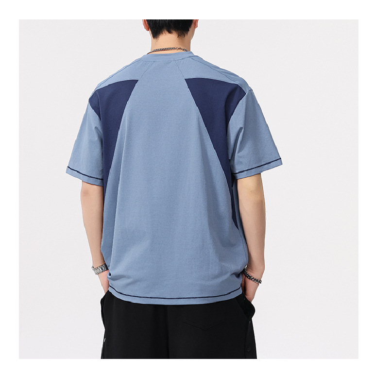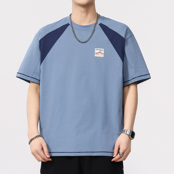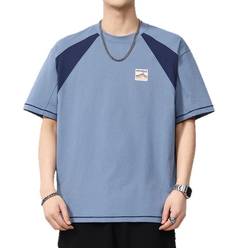 2025夏季新款凉感宽松高品质蓝色圆领T恤简约百搭重磅休闲短袖男