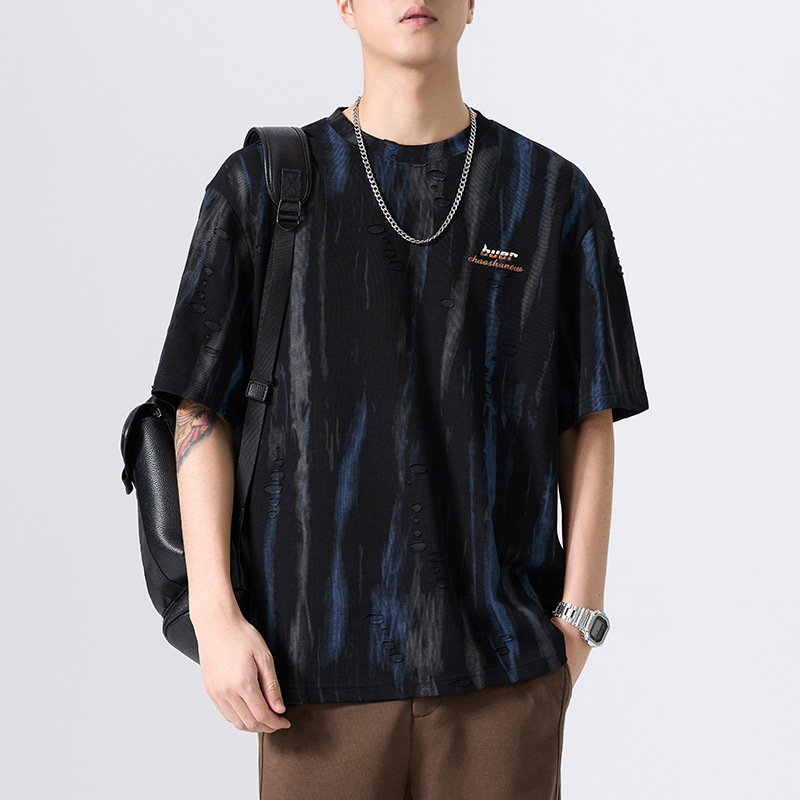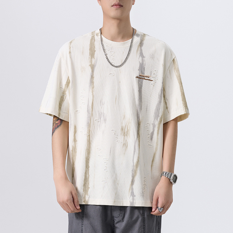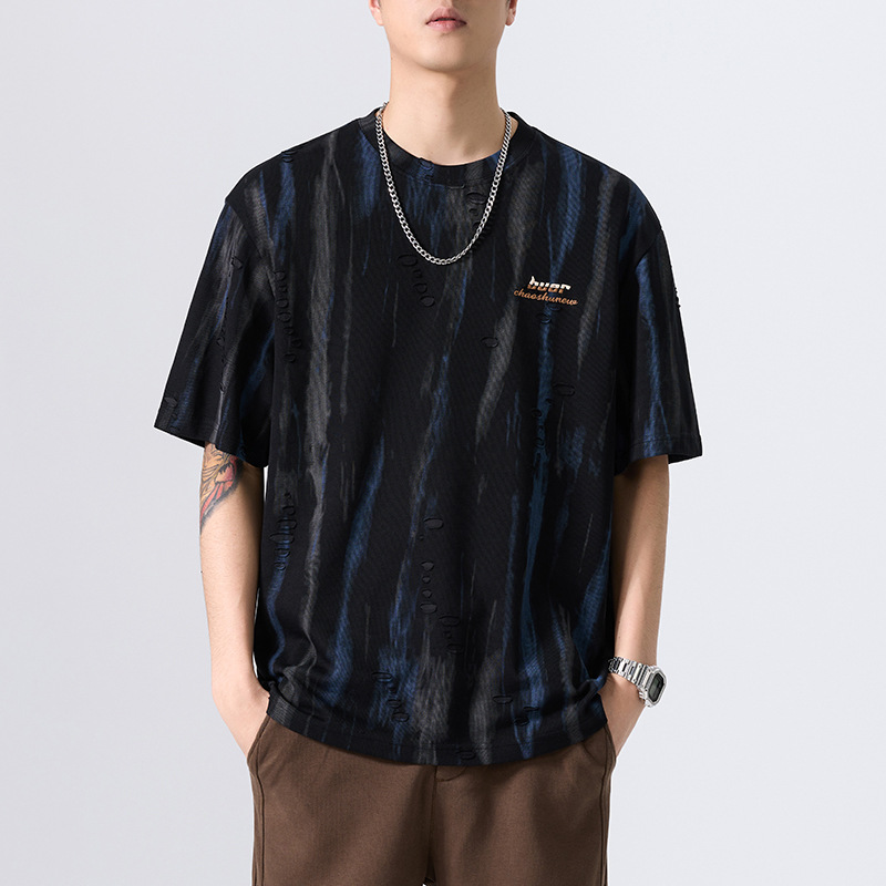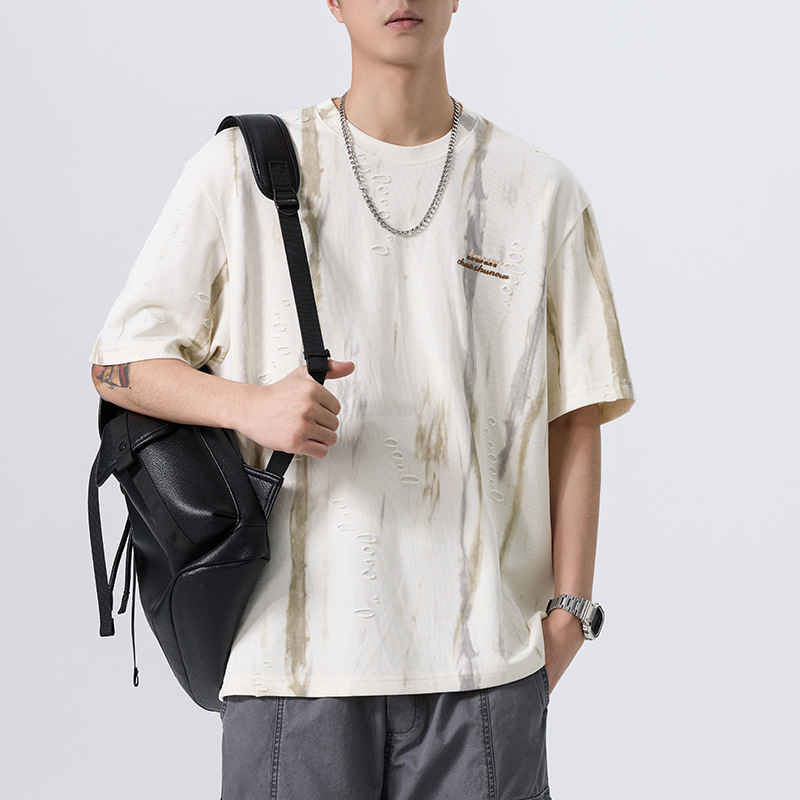 美式复古水墨印花短袖T恤男2025夏季凉感宽松大码速干半袖体恤潮