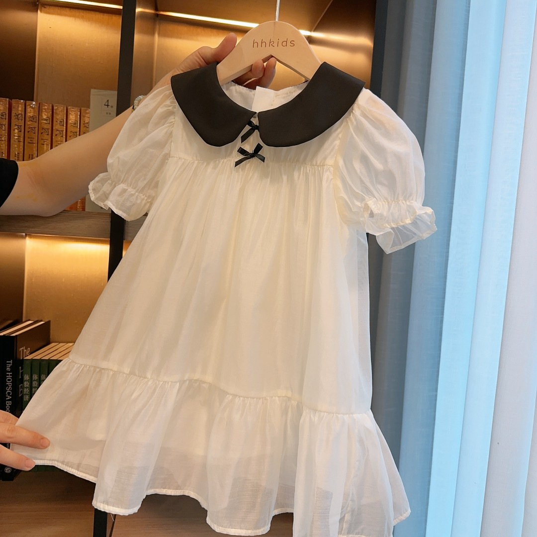 新品韩版女童网纱连衣裙2025春夏新款蝴蝶结翻领洋气公主裙子