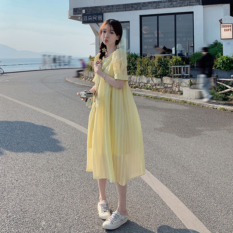 绝美奶fufu连衣裙女夏季新款法式温柔风气质显瘦圆领茶歇裙