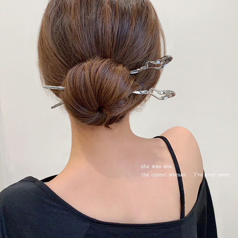 新中式银色金属发簪现代简约后脑勺盘发高级感发钗子日常簪子头饰