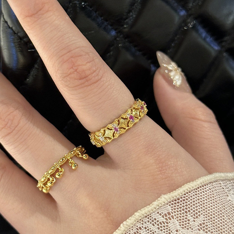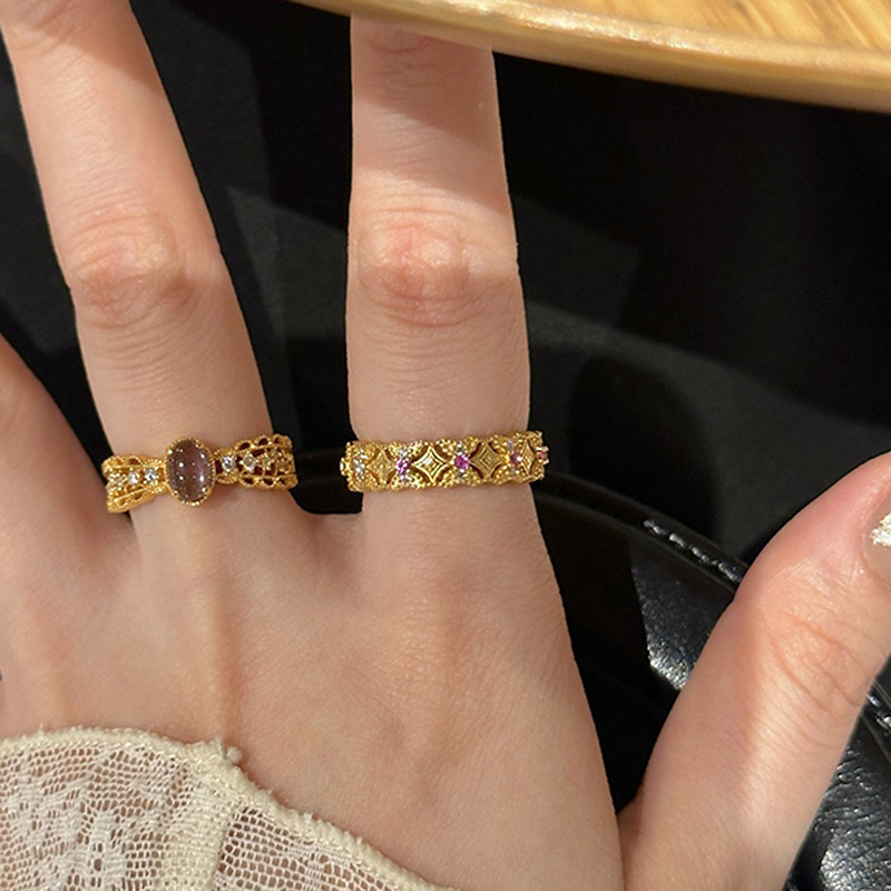 小红书爆款古法摇铃系列灵动自然紫水晶戒指女时尚东方三缘色指环