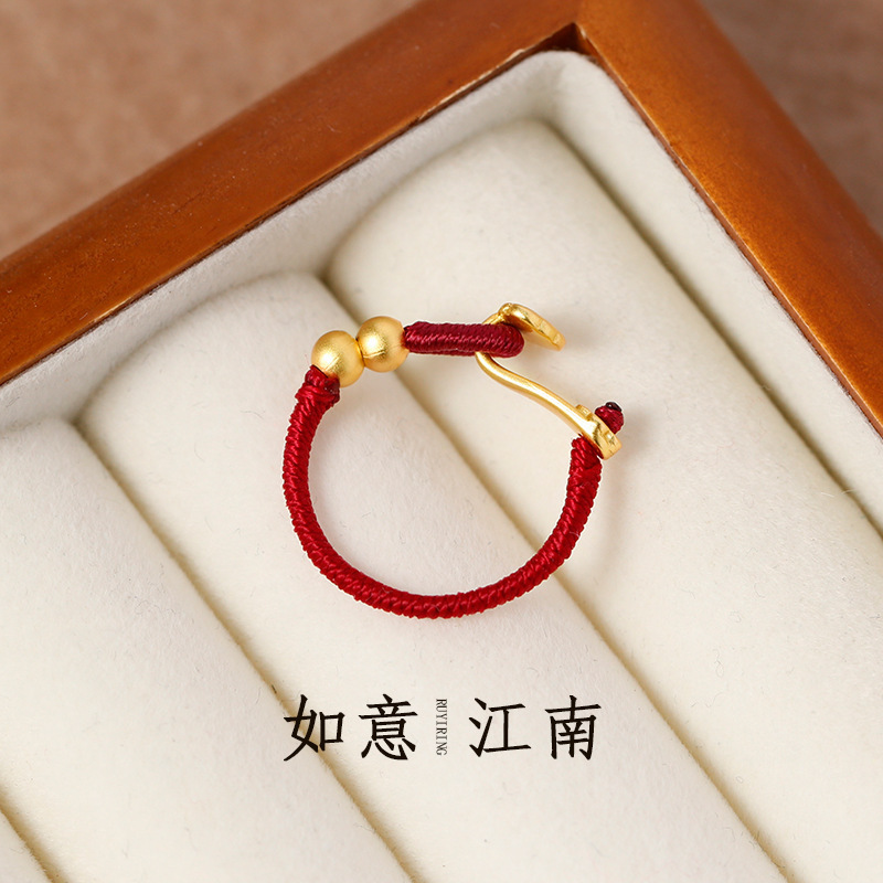 小红书同款如意编绳戒指年新款金色复古中式古风手饰