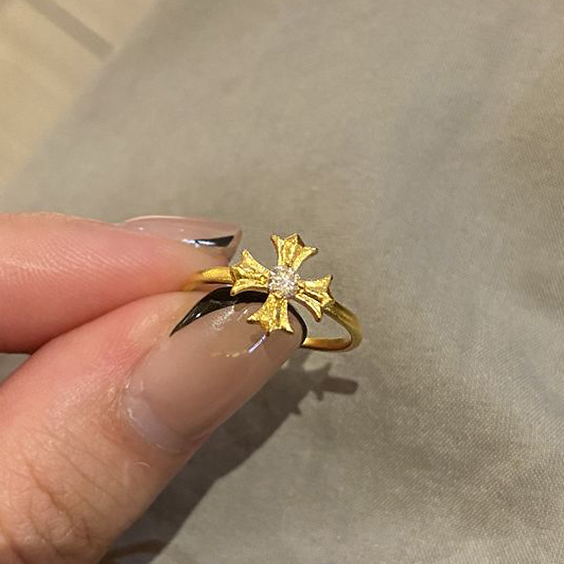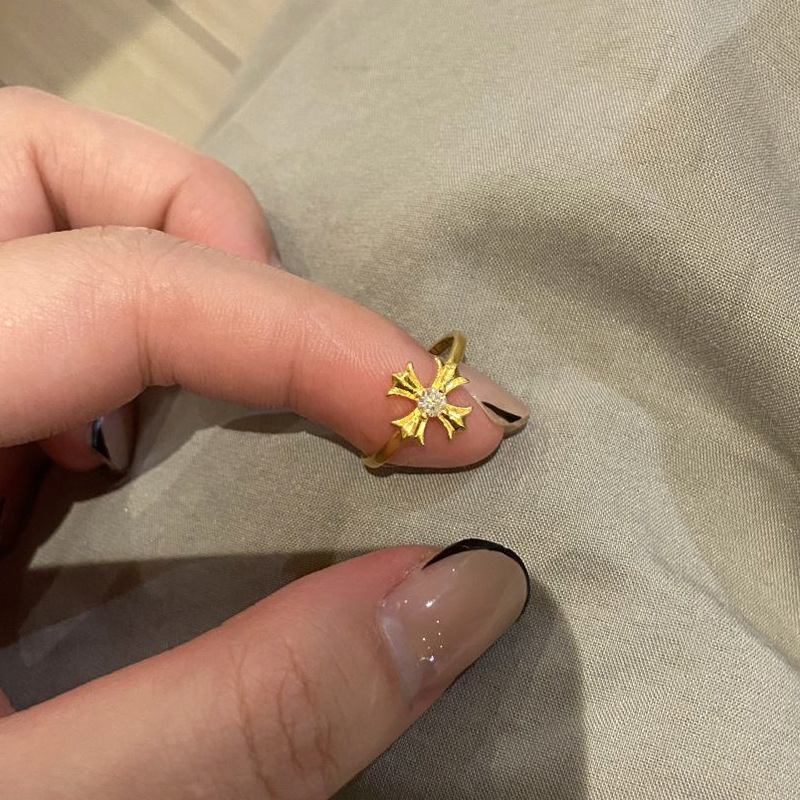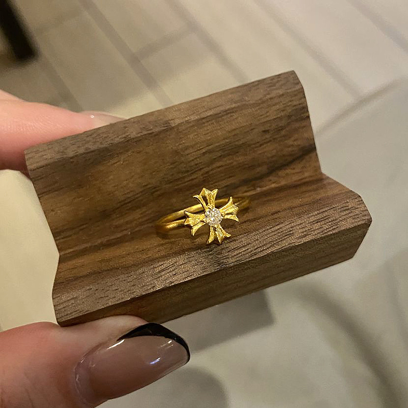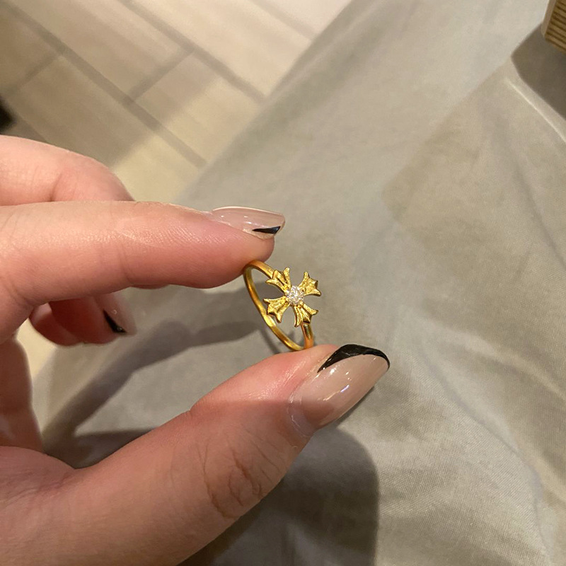 小红书同款十字金刚杵戒指女古法金色点钻爆闪十字架尾戒复古指环