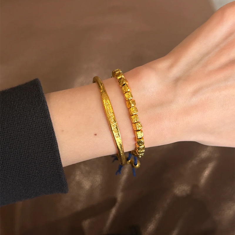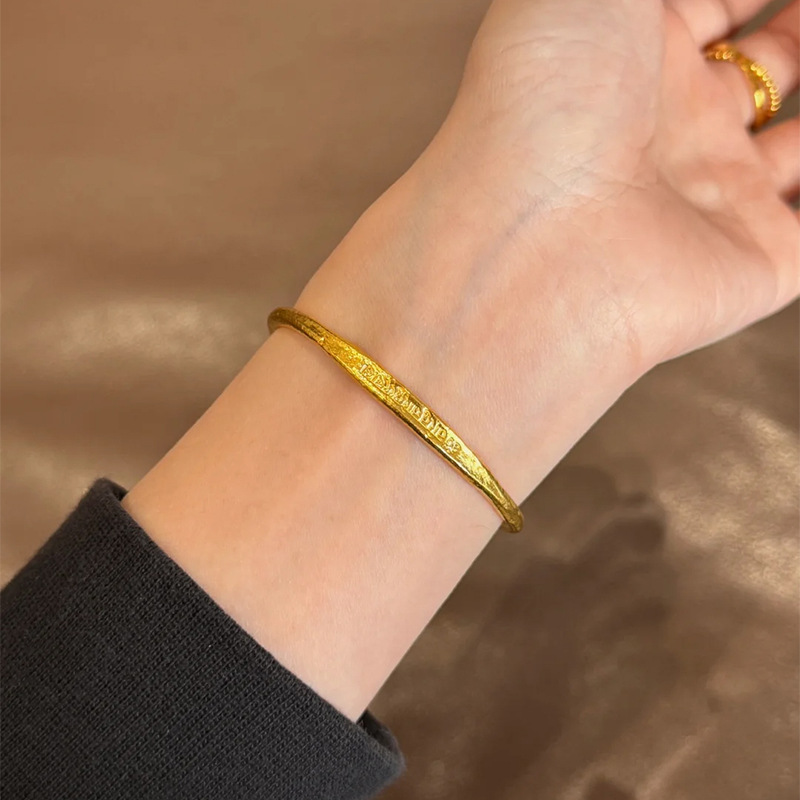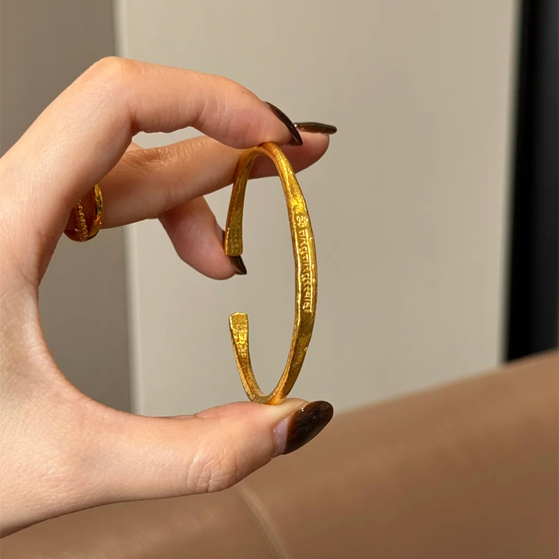 小红书爆款轻奢中古做旧金心咒刻印开口手镯高级感百搭女