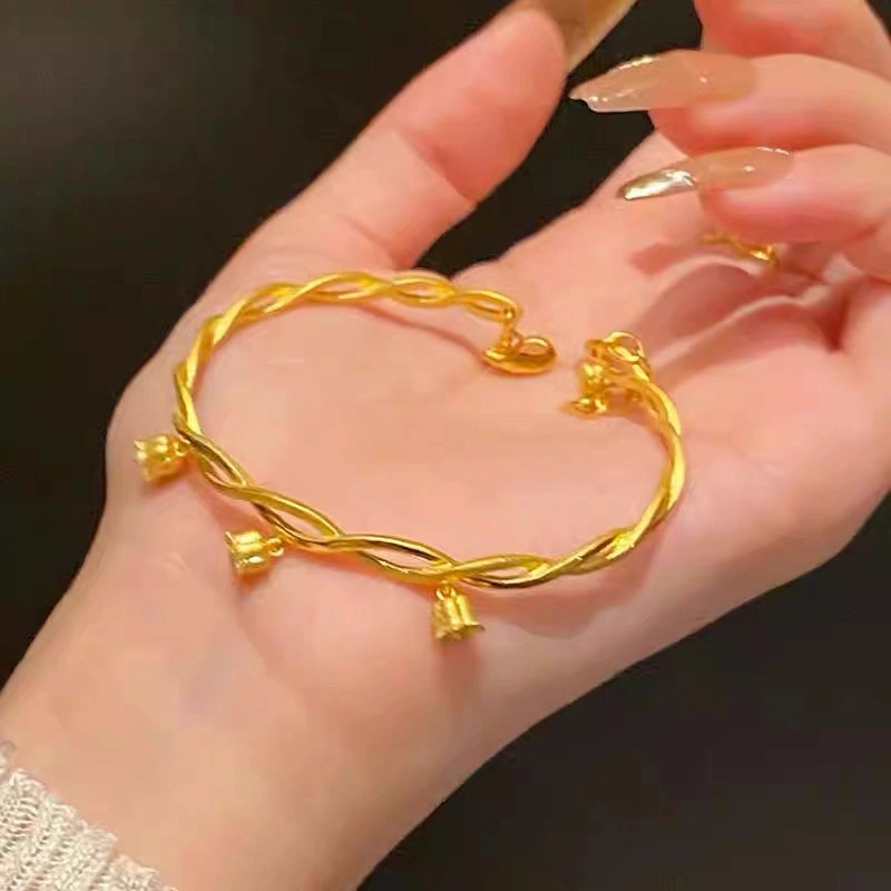 小红书新款金色铃兰花手镯高颜值设计轻奢个性时尚潮流小众饰品女