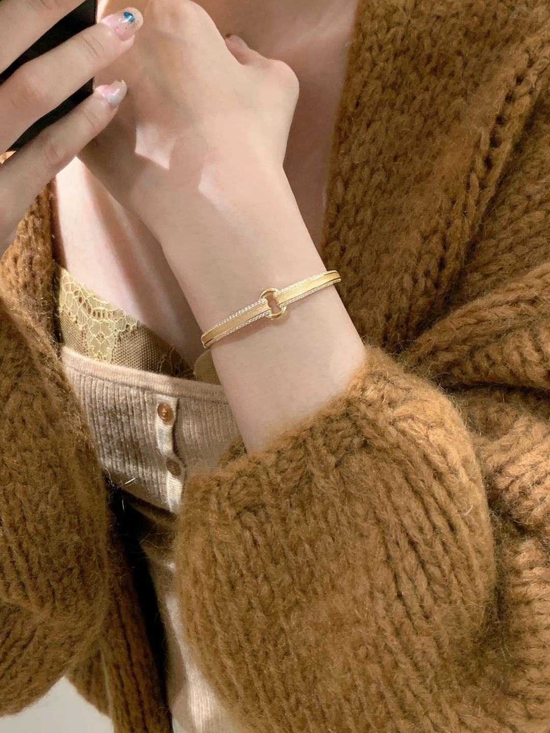 小红书新款中古锁元宝扣拉丝手镯高级感设计宝藏气质个性百搭手环