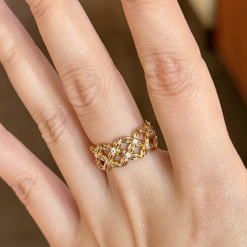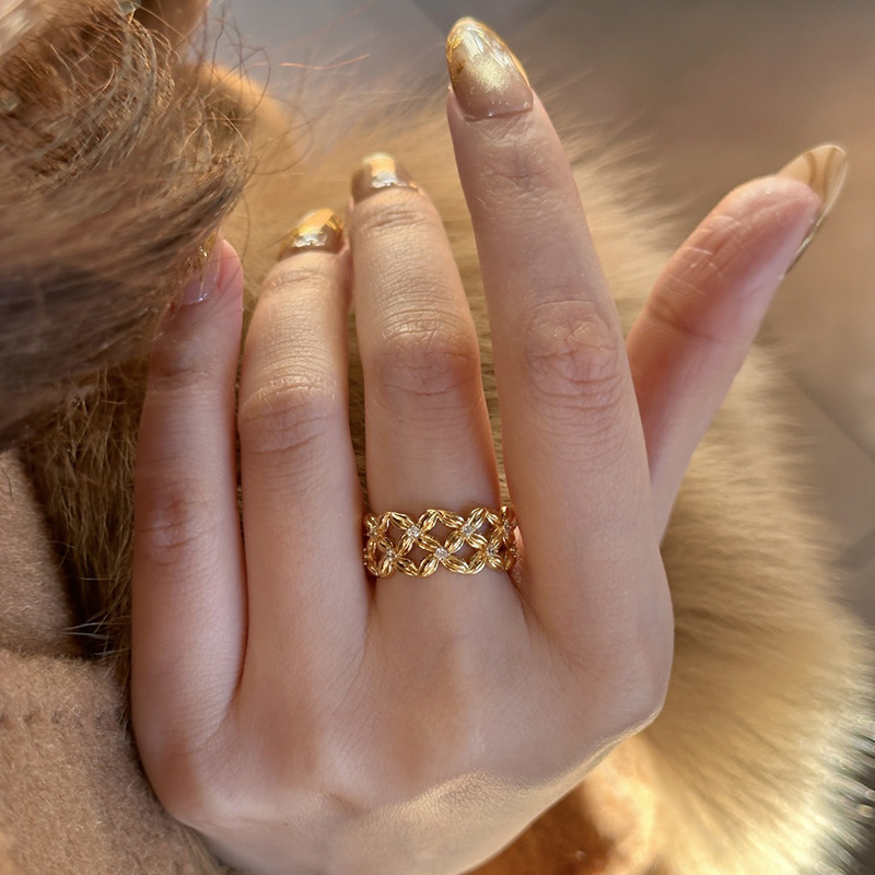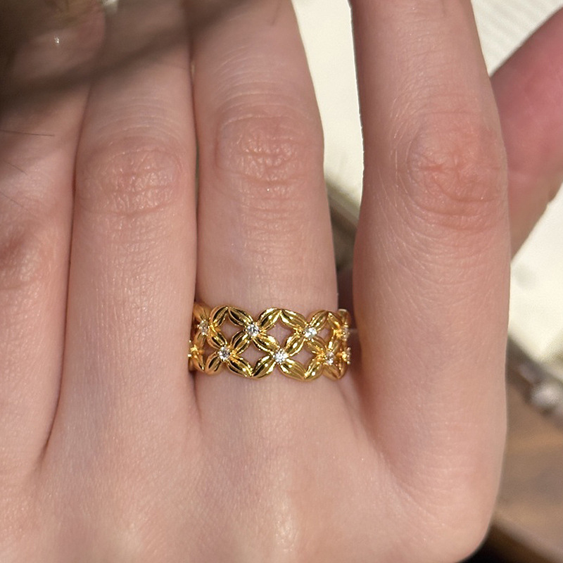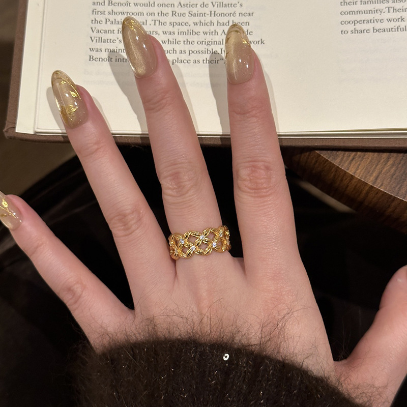 小红书爆款繁花似锦四叶花点钻戒指2025新款时尚轻奢指环