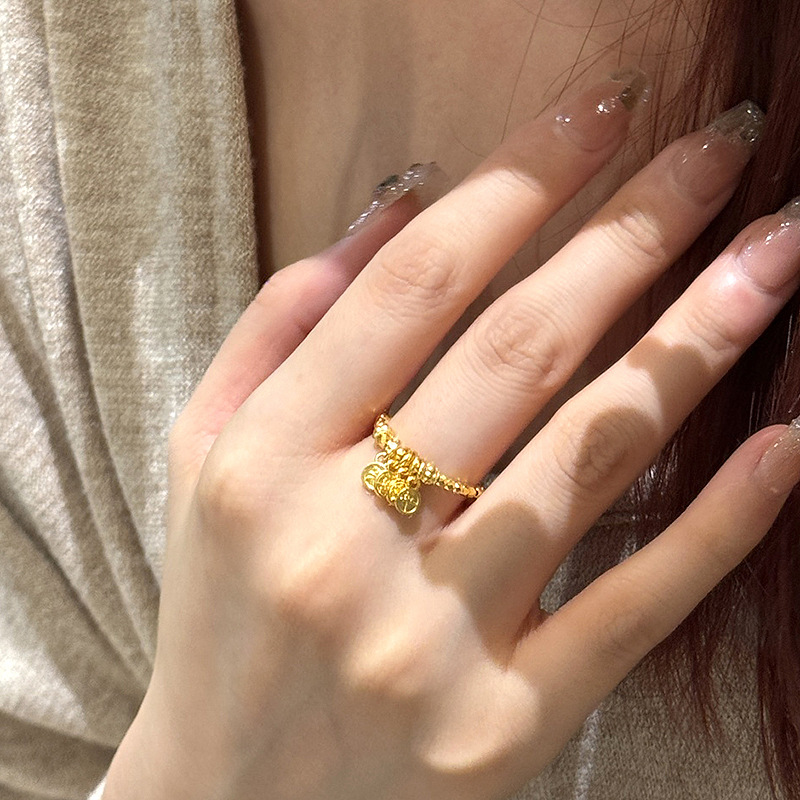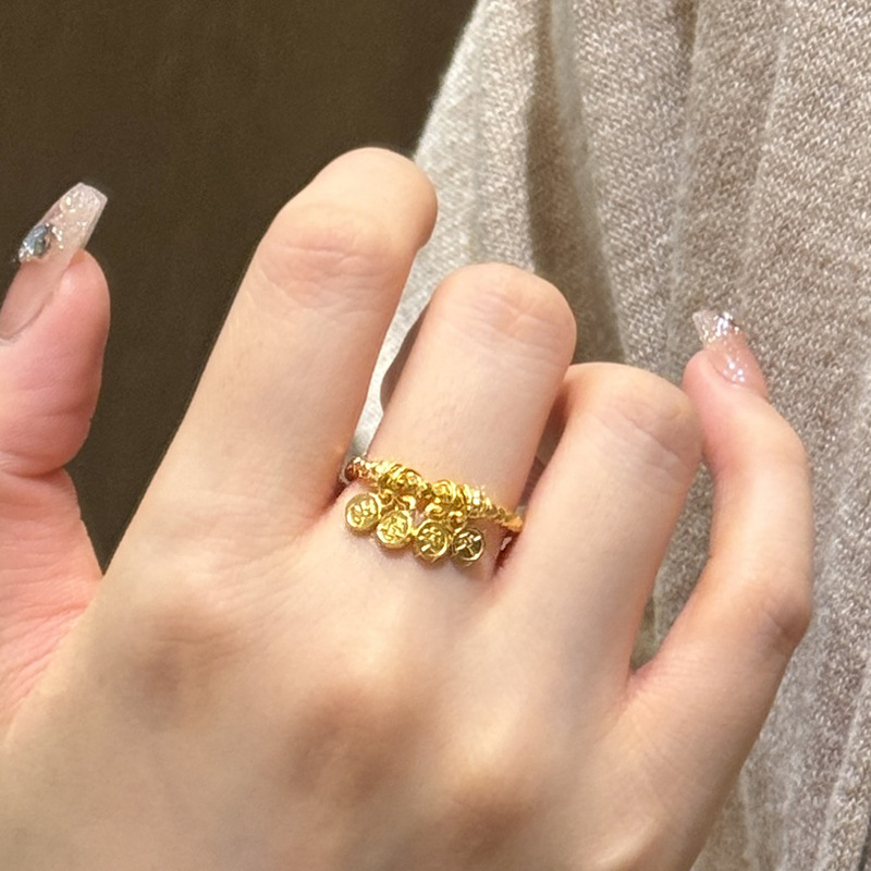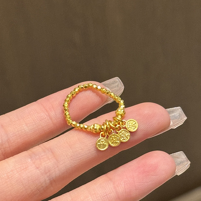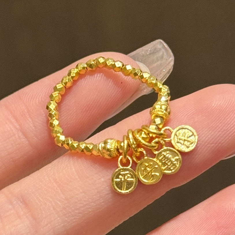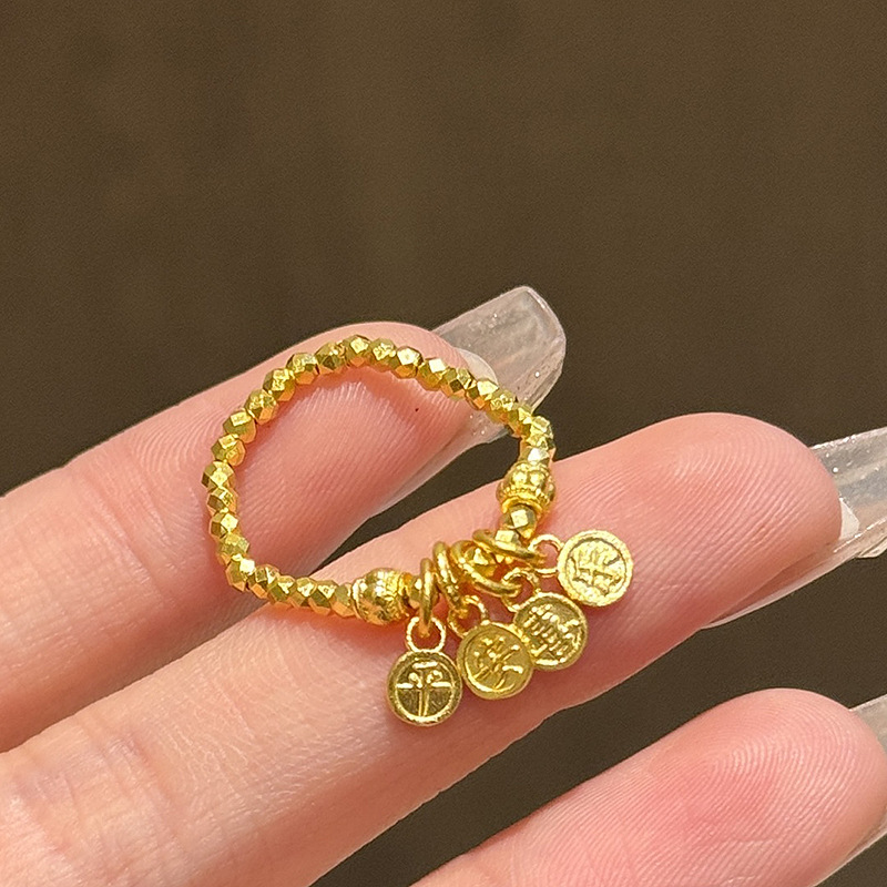 小红书爆款平安喜乐福气戒指2025新款古法金珠珠串珠指环