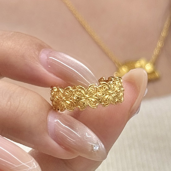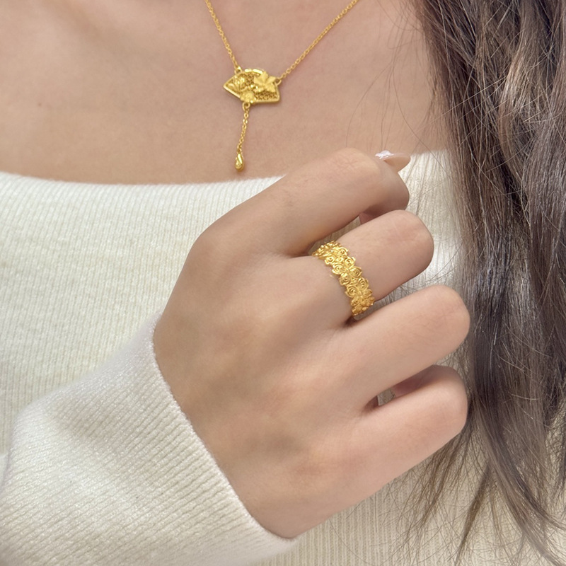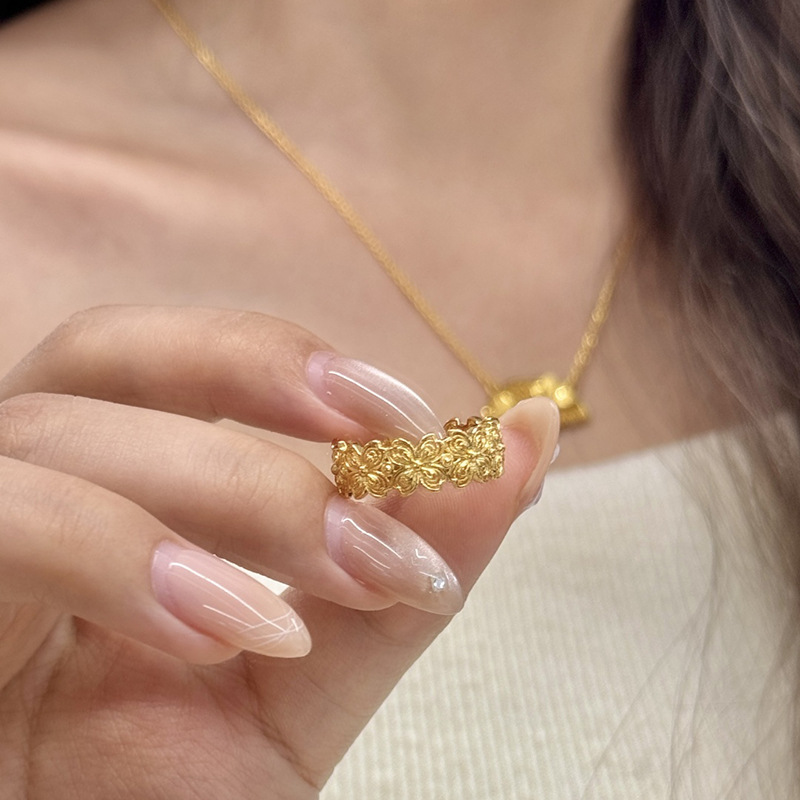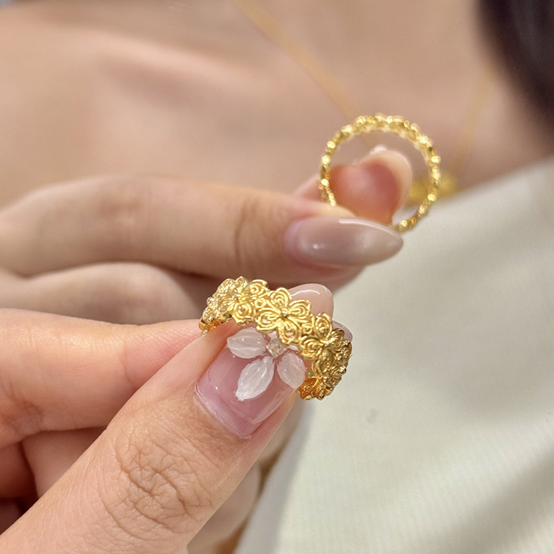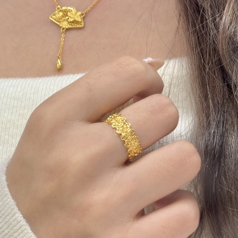 小红书爆款镂空梦幻蝴蝶戒指女2025新款古法金精致四叶草小花指环