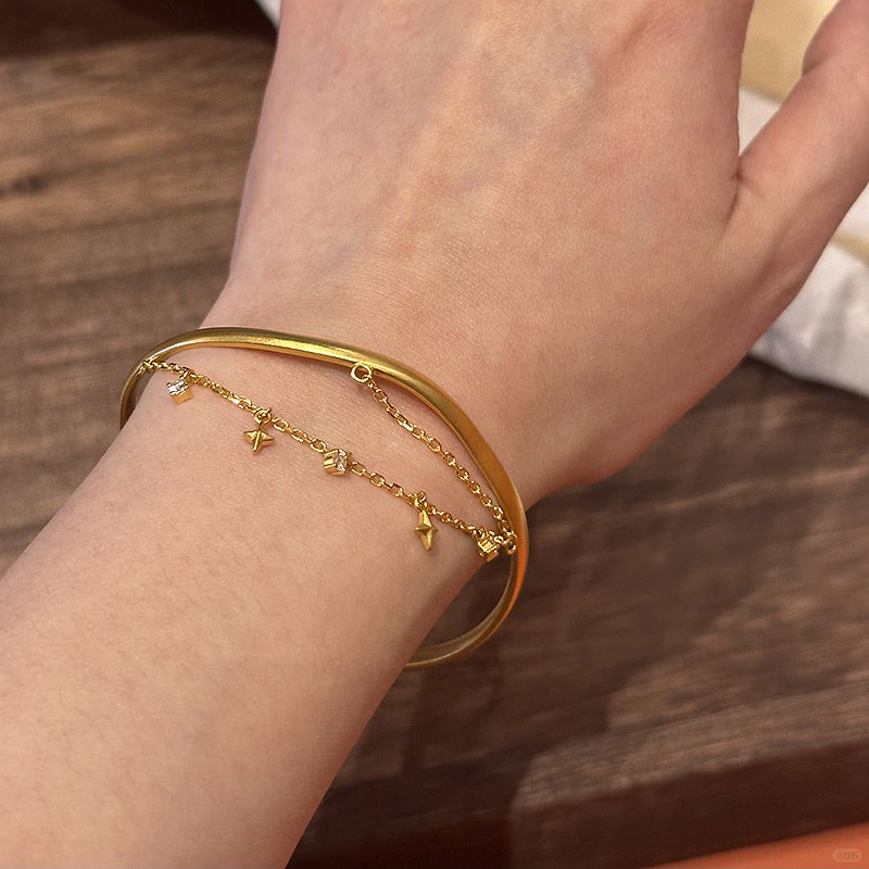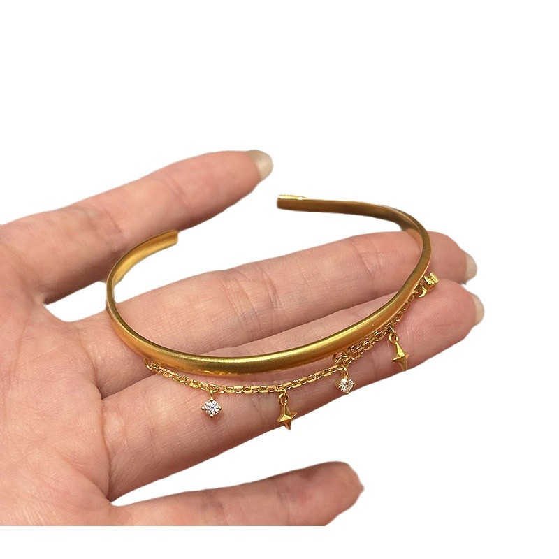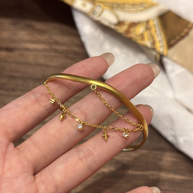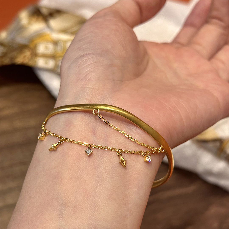 小红书爆款流星坠落手镯女微镶闪钻流苏叠戴手环古法金色光面手饰