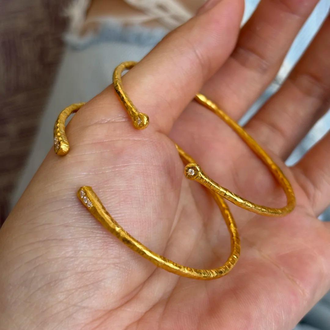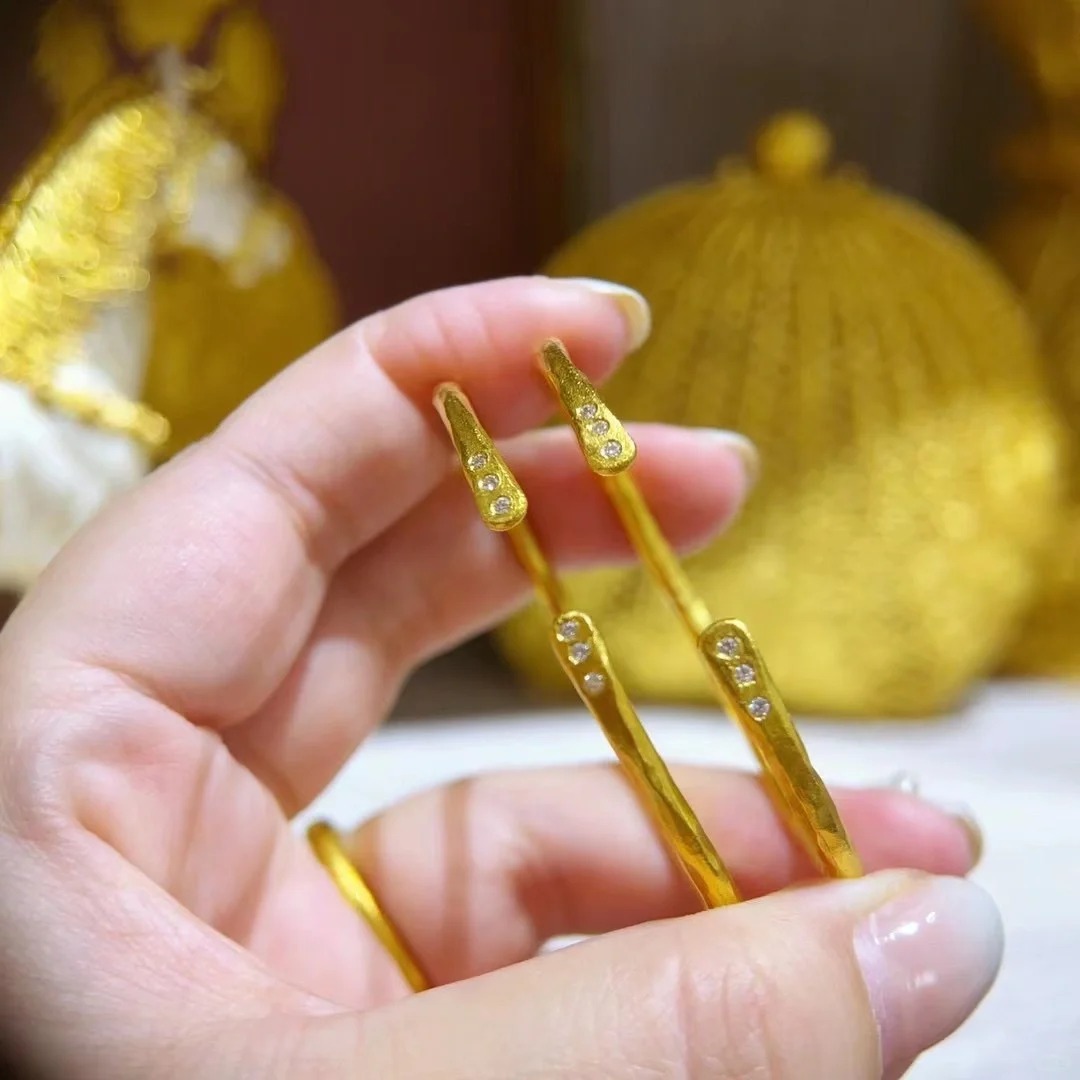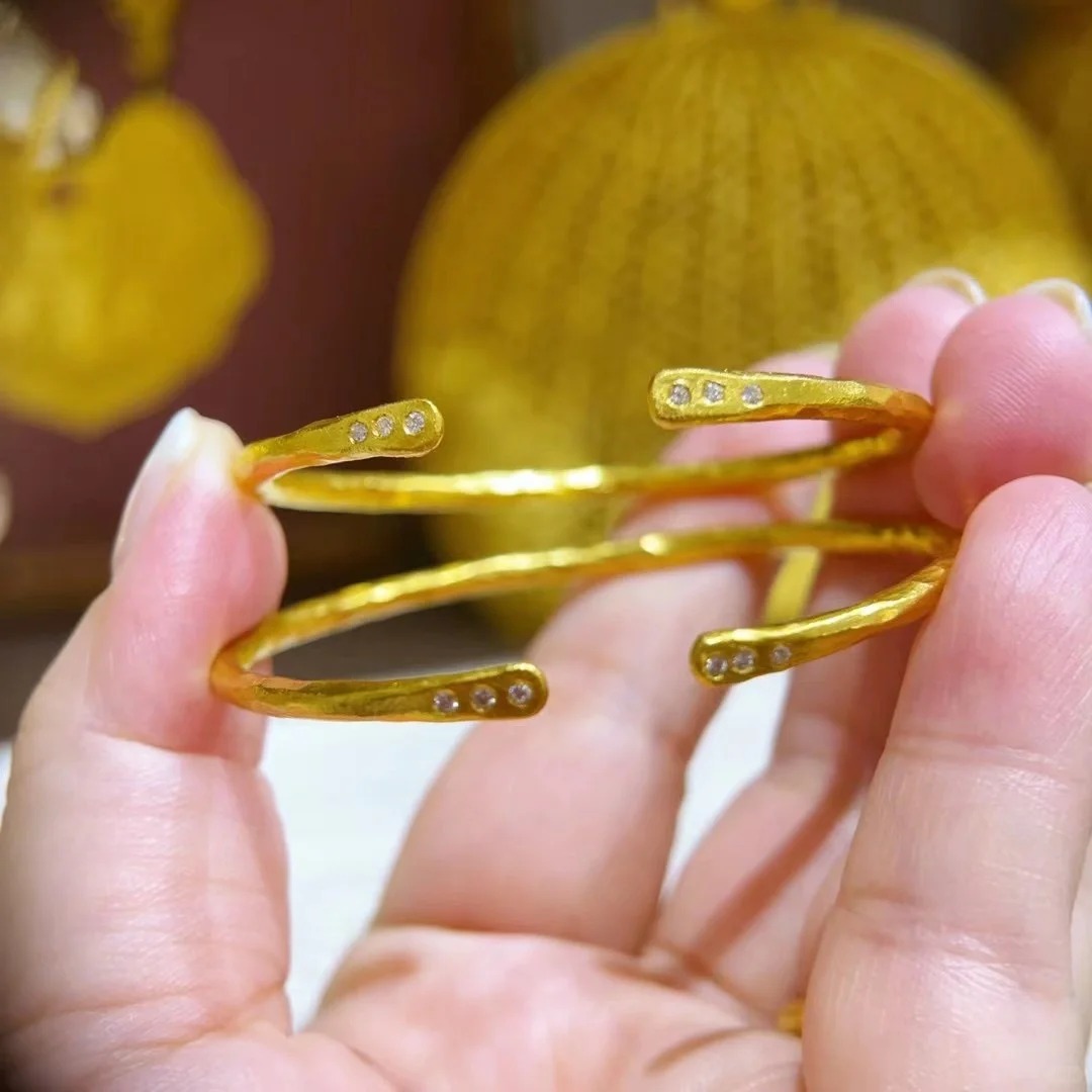 小红书同款叮当手镯极简主义纯手工小克重古法金色单钻开口手镯女