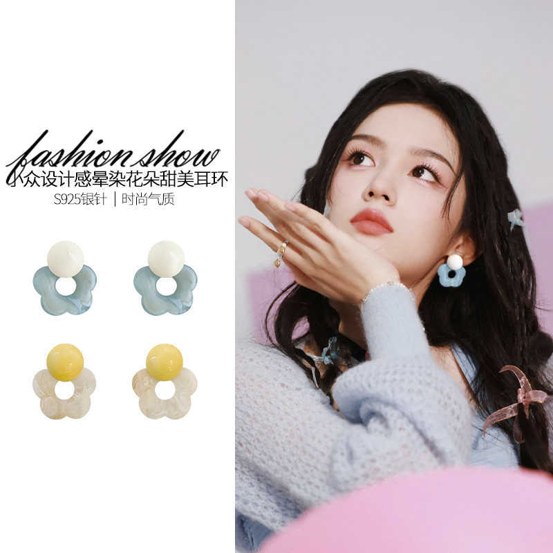 盐系花朵晕染耳环女复古高级感甜美耳饰小众设计简约清新气质耳钉