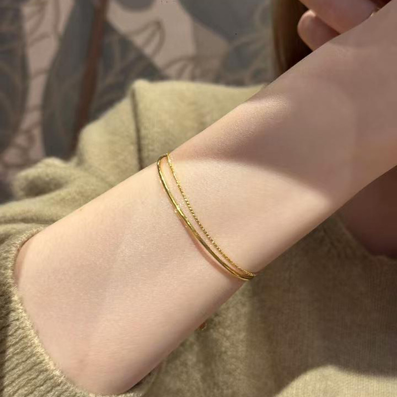 小红书爆款叠戴灵动手镯新款黄金色双层佩戴链条手饰