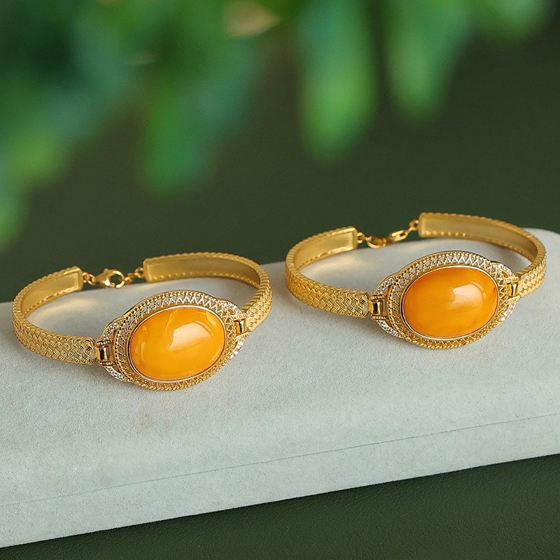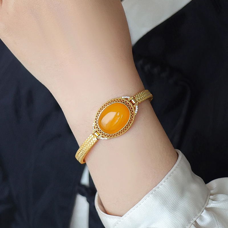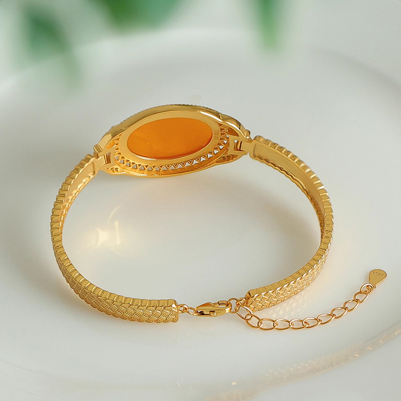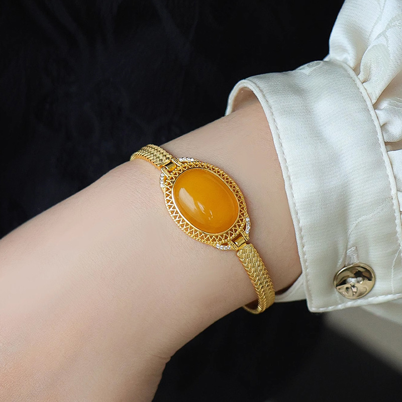小红书爆款鸡油老蜜蜡手镯古法金镯子新中式高级感祥云琥珀手链