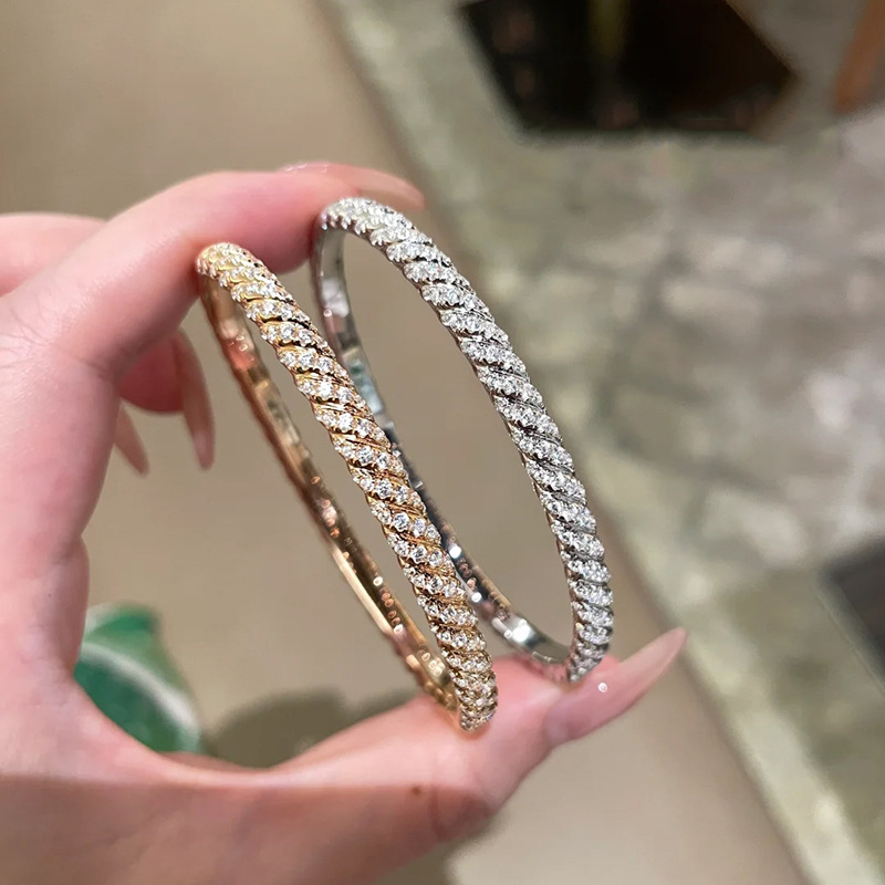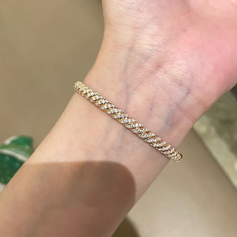 小红书同款精致麻花满钻爆闪手镯2025新款时尚轻奢简约闪钻手环
