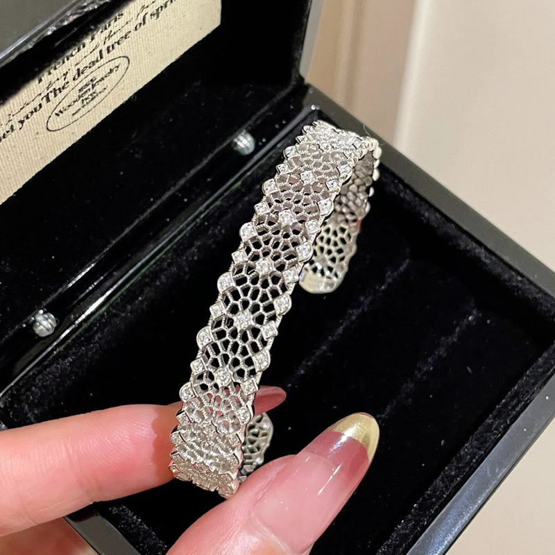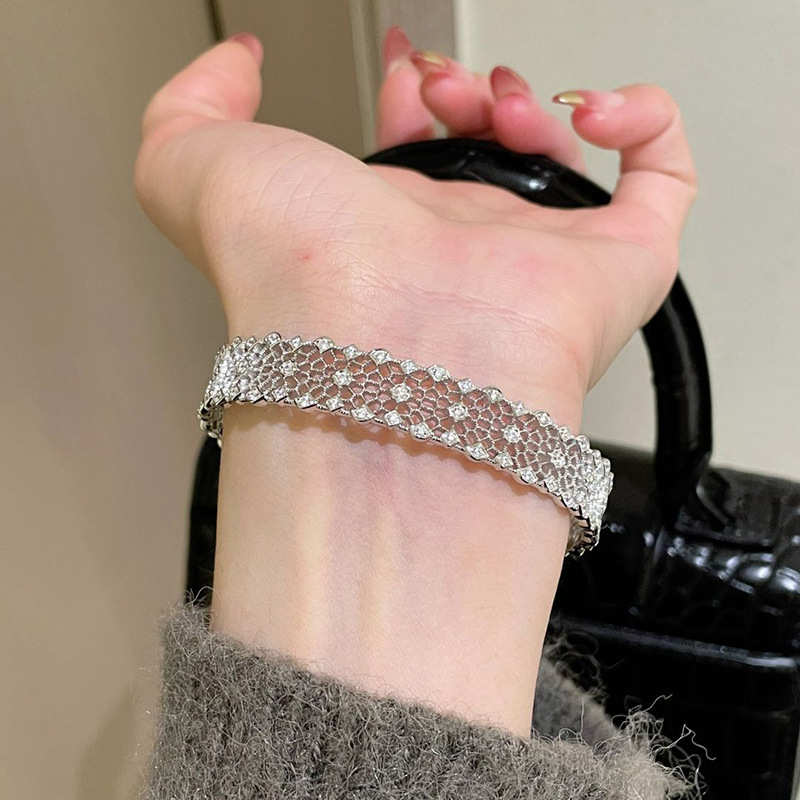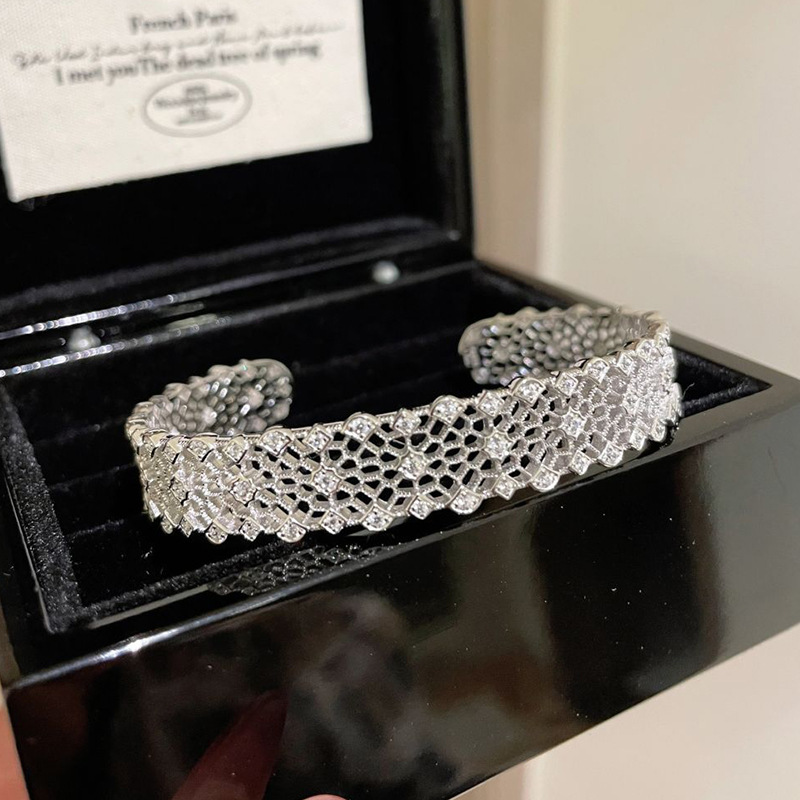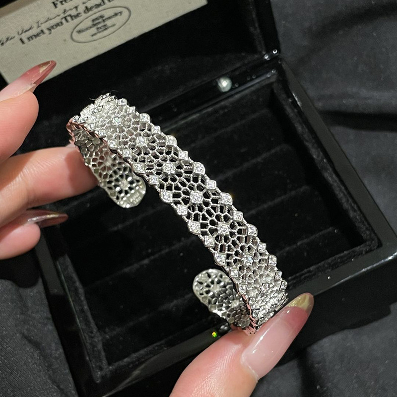 小红书爆款蕾丝镂空满钻手镯女新款满天星网状拉丝爆闪手环