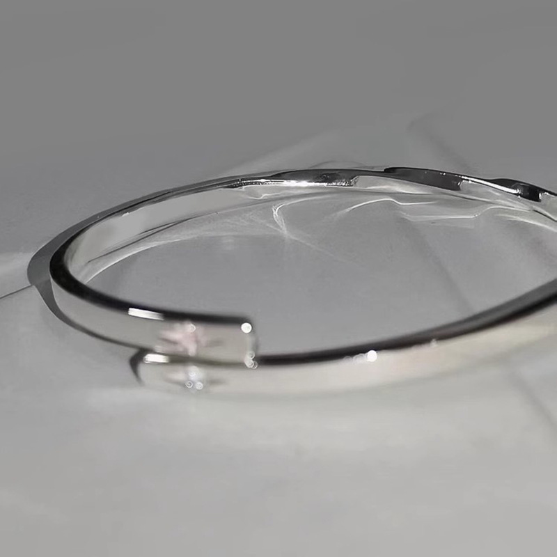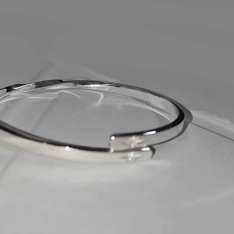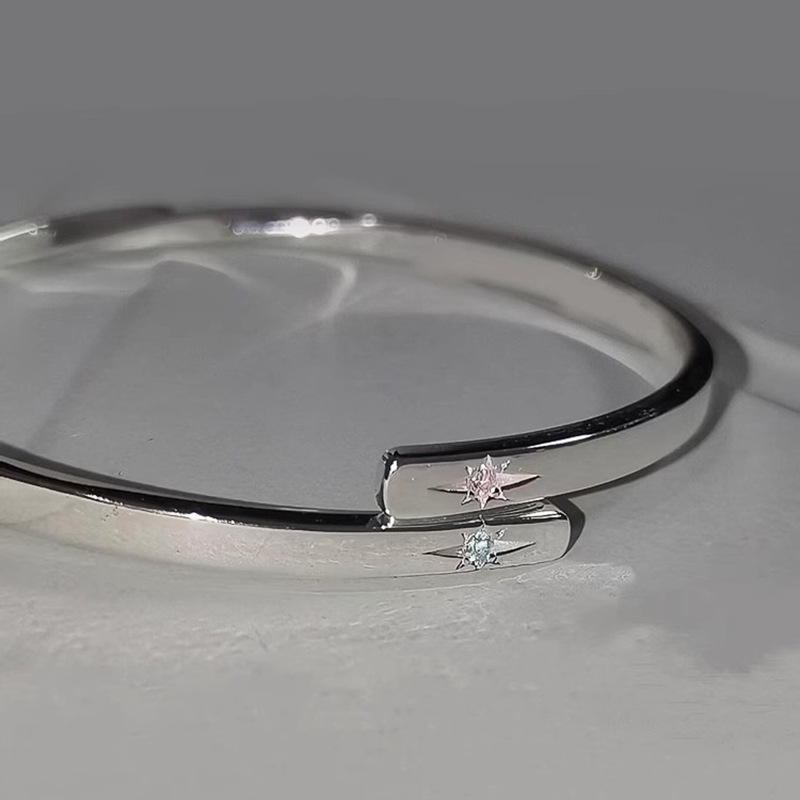 小红书爆款同款亮面银色镶嵌双星芒银手镯高端时尚高级感