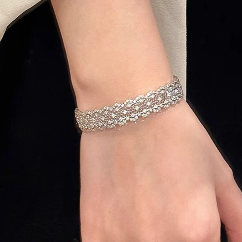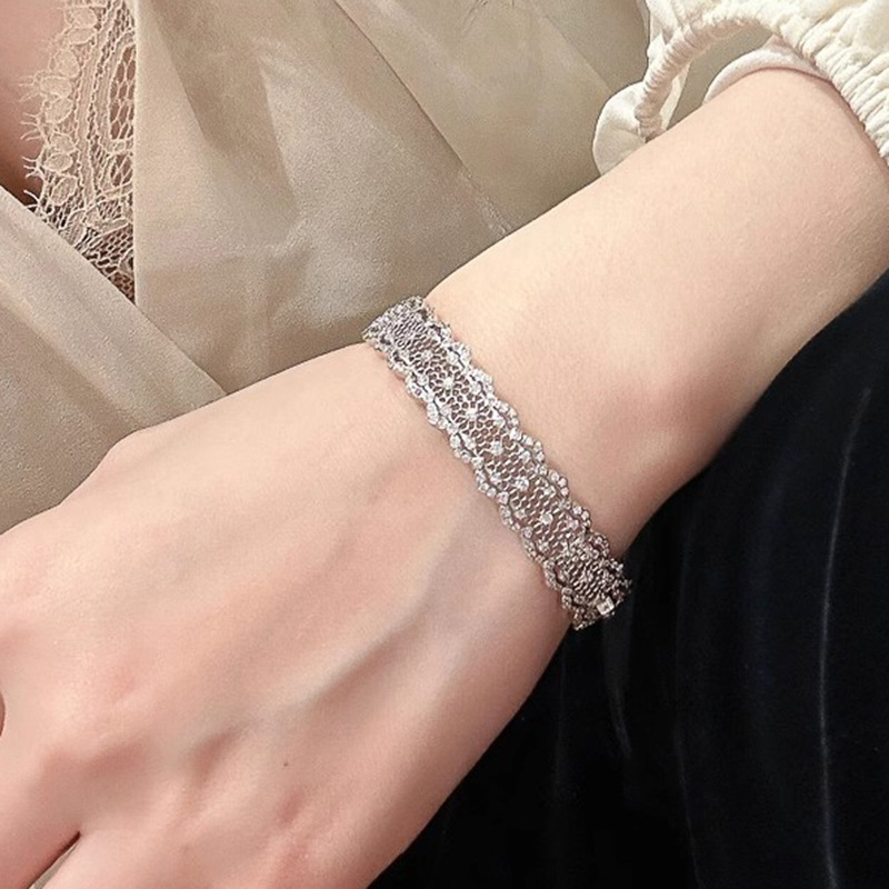 小红书爆款法式轻奢满天星蕾丝镂空满钻手镯女时尚设计感一件代发