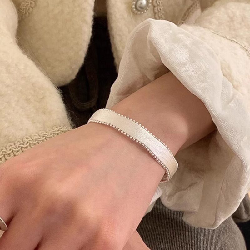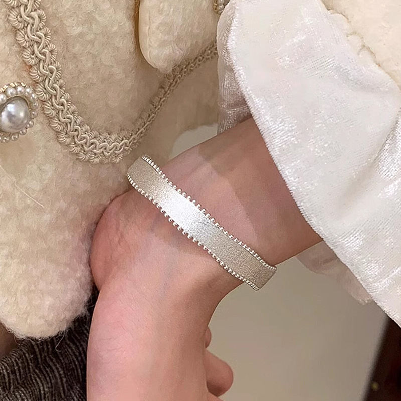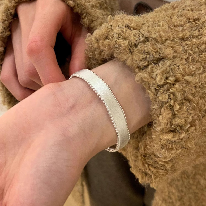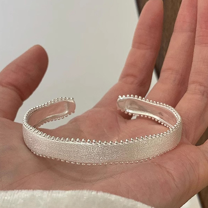 小红书爆款拉丝开口不规则银色手镯2025新款重工边珠显白精致手环