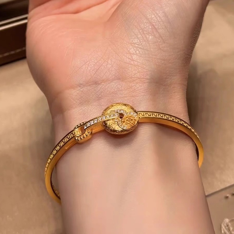 小红书爆款国运传承葫芦平安扣手镯古法金色马蹄扣小众手环配饰女