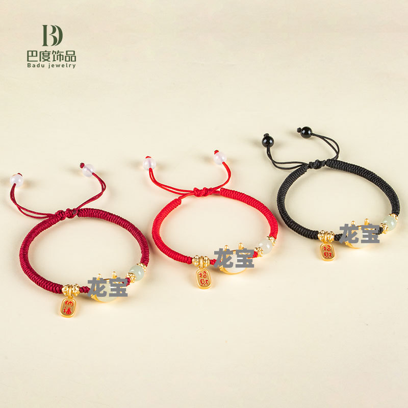 天然和田玉龙宝十二生肖龙纳福红绳手链女手工编织手绳新中式国朝
