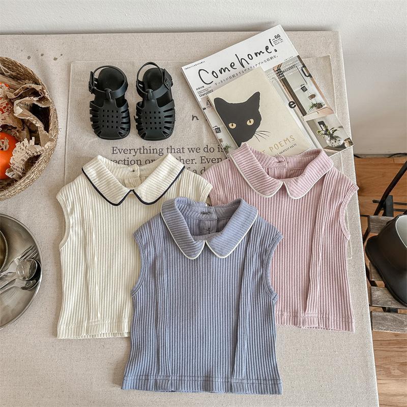 女童夏装背心T恤宝宝洋气儿童个性潮韩版时髦网红翻领无袖POLO衫