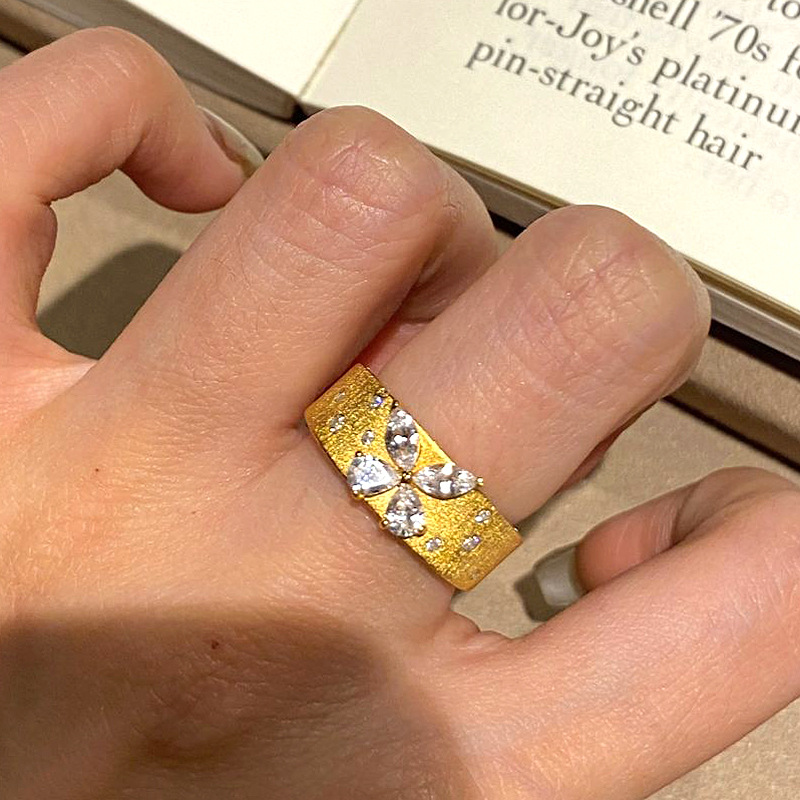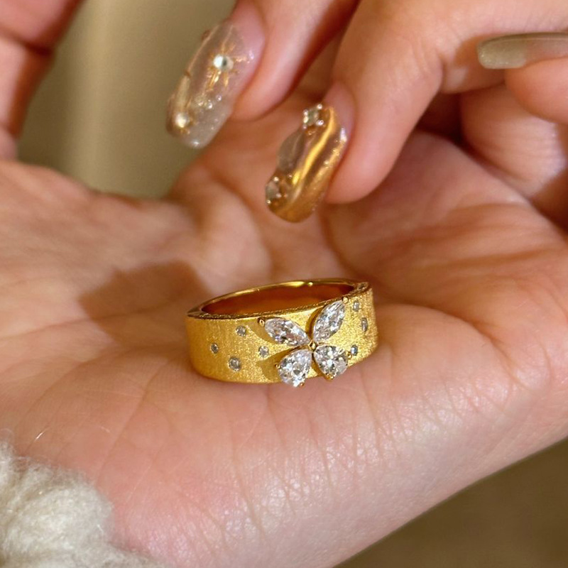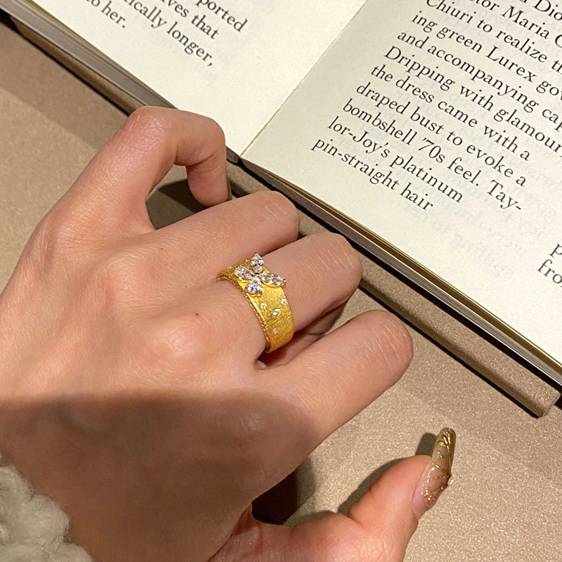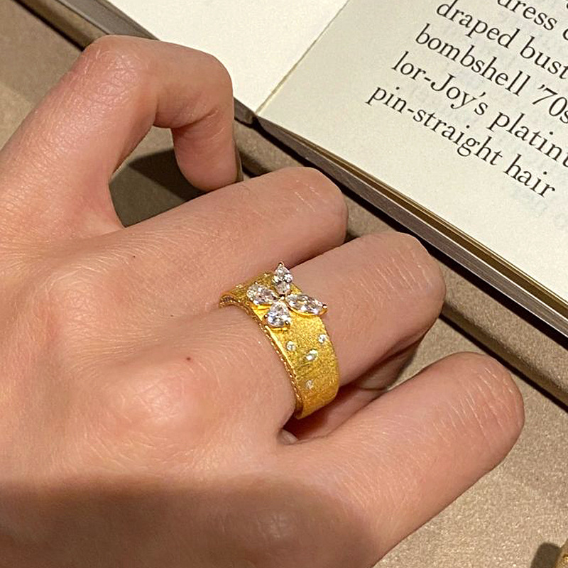 小红书爆款中古拉丝蝴蝶戒指2025新款新法式意大利点钻爆闪指环女