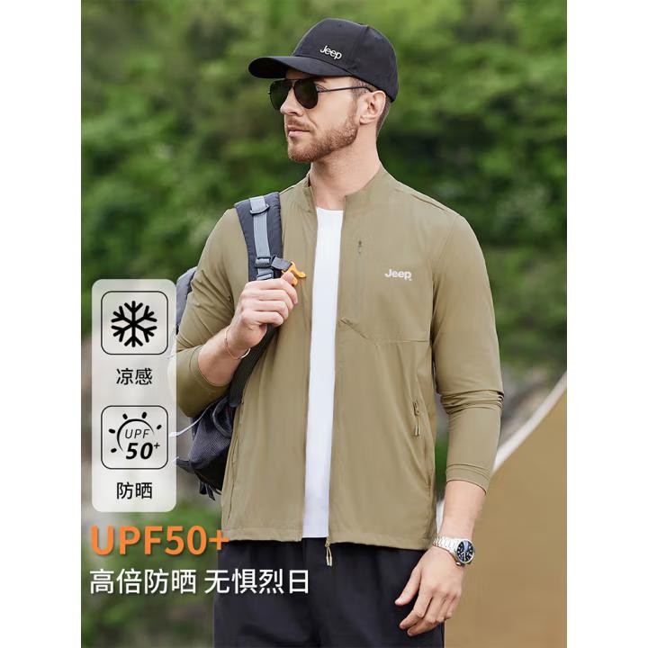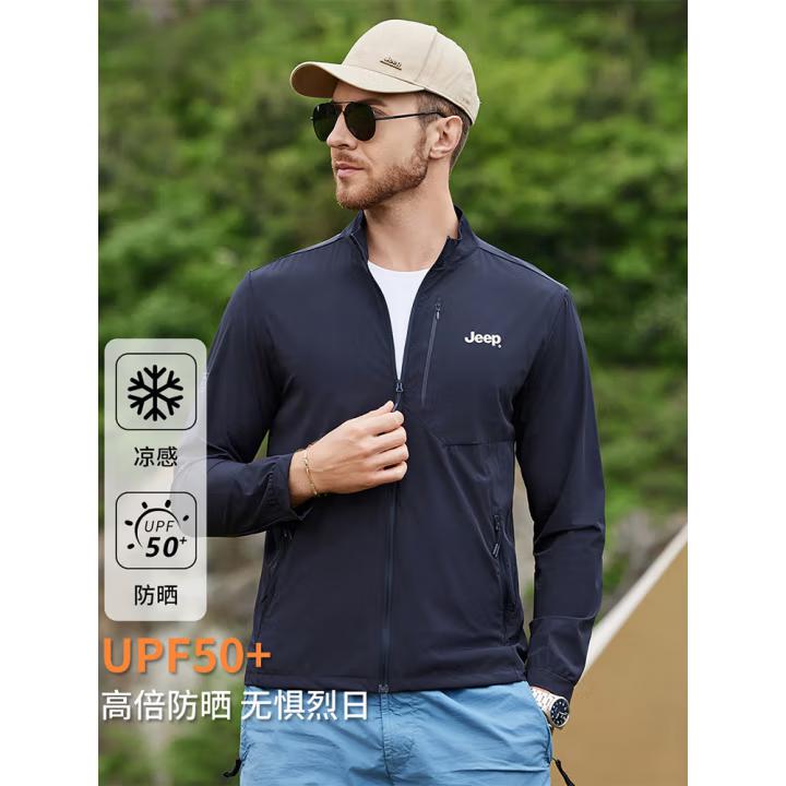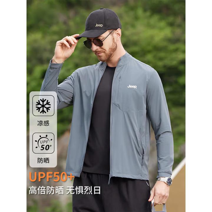 JEEP夏季新款速干皮肤衣男户外立领轻薄防晒外套